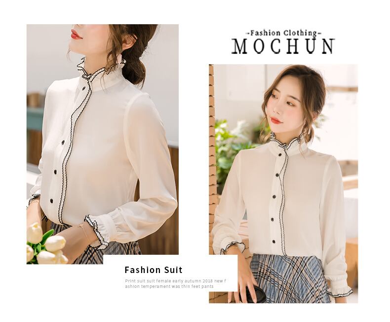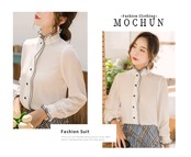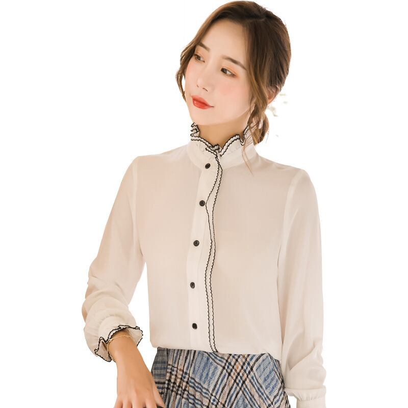 【新作】【送料無料】 シフォンシャツレディース長袖デザインセンスニッチファッションエインスタイルスタンドアップカラーレトロ香港スタイルパレススタイルホワイトシャツ秋-アリババ ロング レース オータム 秋物 12b354629964595