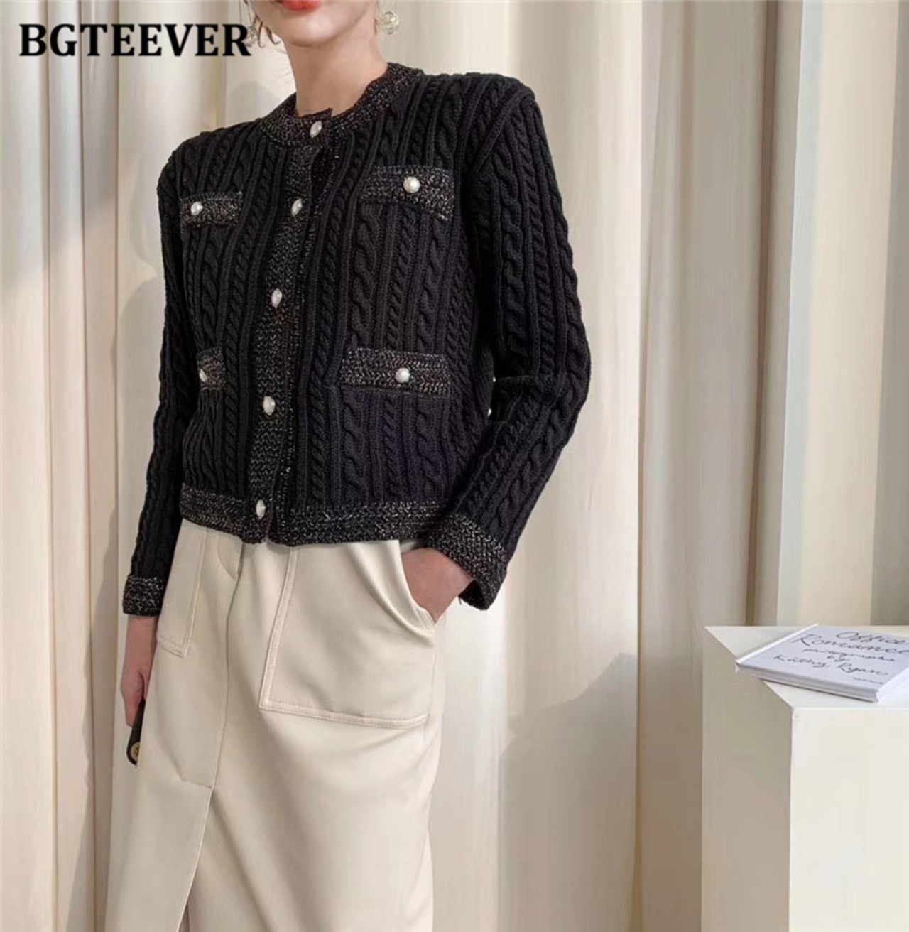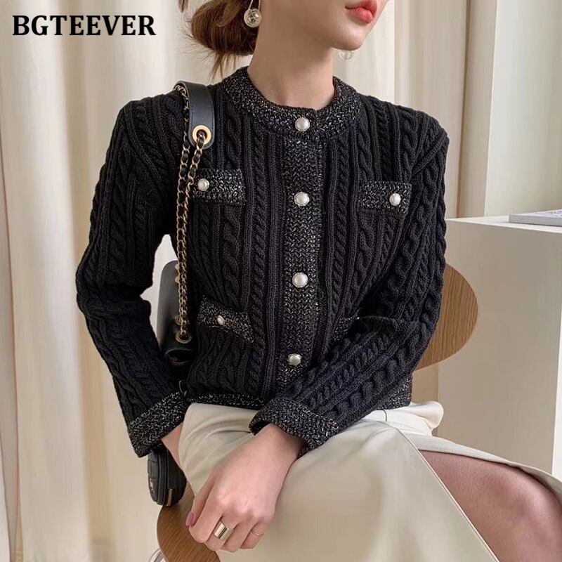 【新作】【送料無料】 BGTEEVERレディースOネックニットカーディガンシングルブレストスリムツイストセーター2020秋Oネックアウタートップス オータム 秋物 12b127419918840