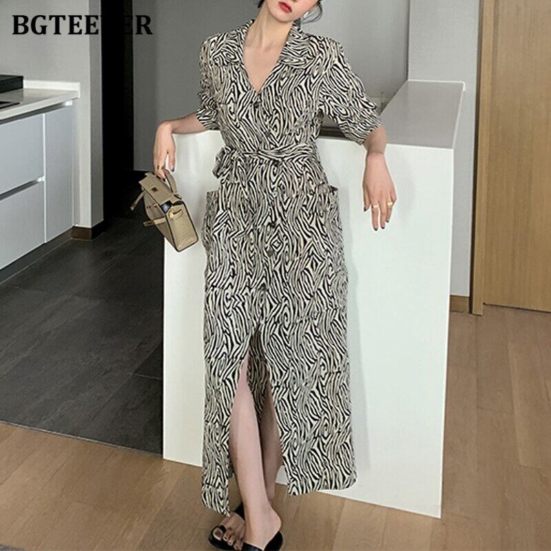 【新作】【送料無料】 BGTEEVERサマーシックターンダウンカラーシングルブレストドレスレディース半袖ポケットレースアップストライプドレス2020 ショート ハーフスリーブ 夏物 12b113733266807
