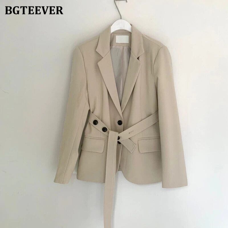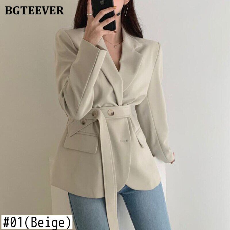 【新作】【送料無料】 BGTEEVERシックなノッチ付きカラーブレイザー2020秋のスリムウエストベルト付き女性スーツジャケットシングルブレストアウター オータム 秋物 ハーネス 12b174883404883