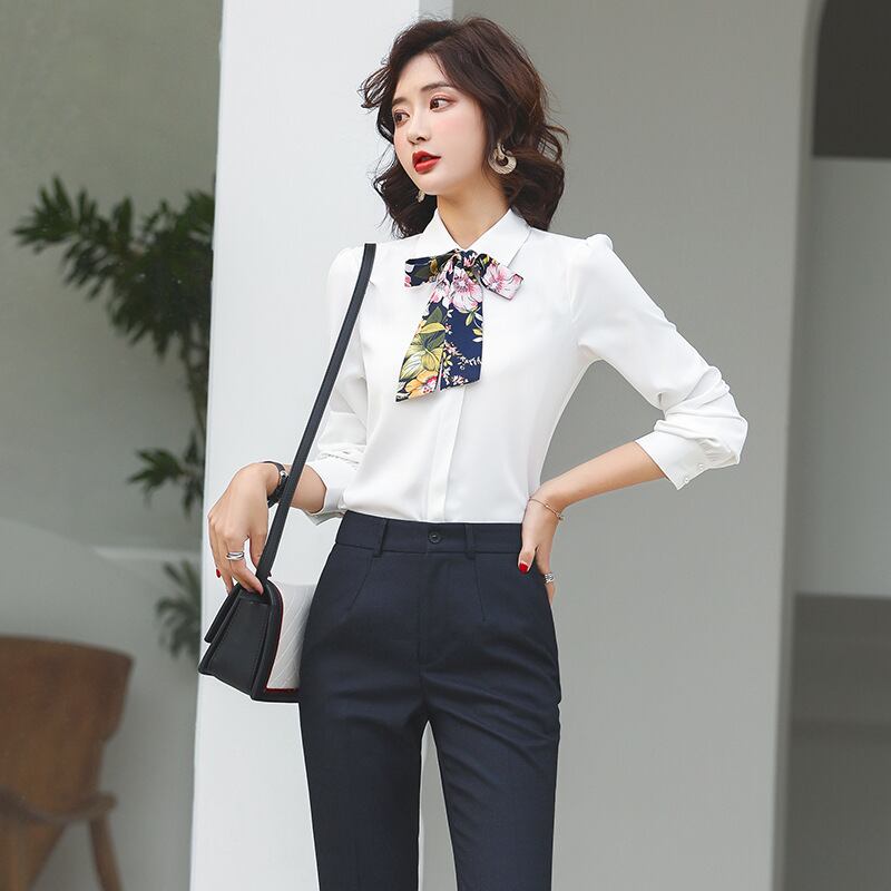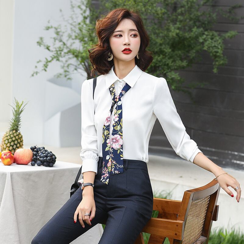 【新作】【送料無料】 白シャツ女性2021年秋新作気質ファッション長袖プロウェアOLシャツマルウェア女性オーバーオール ロング ホワイト オータム 秋物 12b313018646436