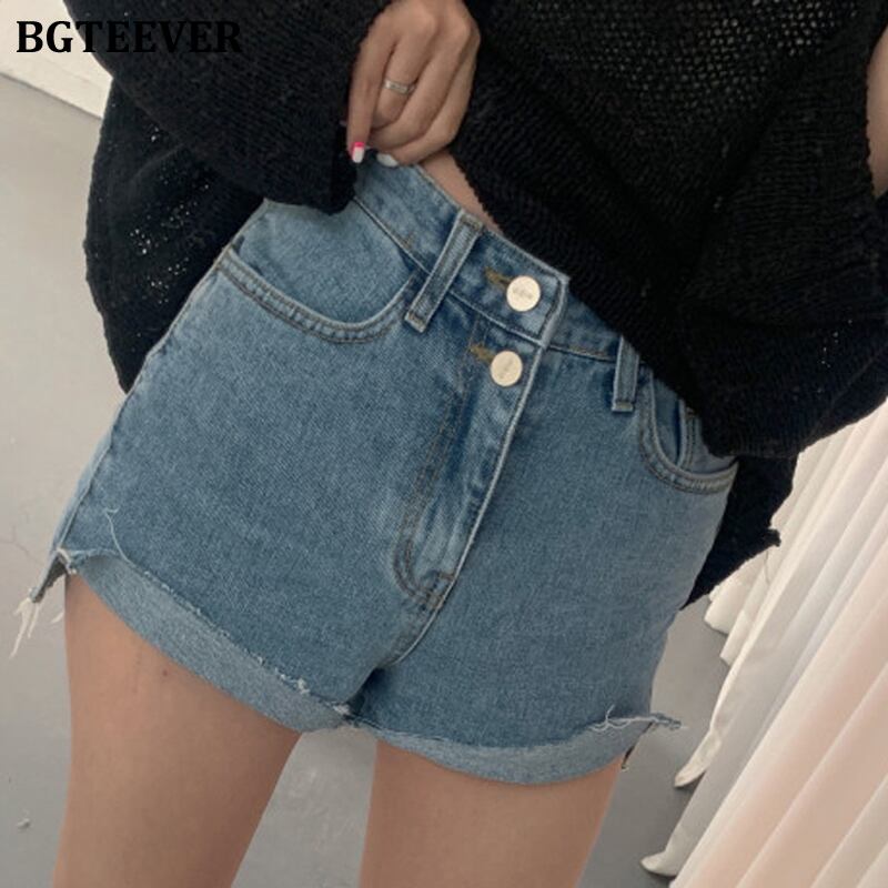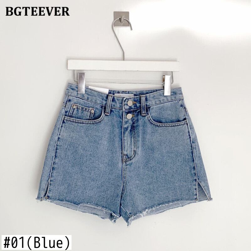【新作】【送料無料】 BGTEEVERシックサマーダブルボタンウエストデニムブルージーンズショーツレディースサイドスプリットストリートデニムショーツ2020 夏物 ブルマー 12b188182431198