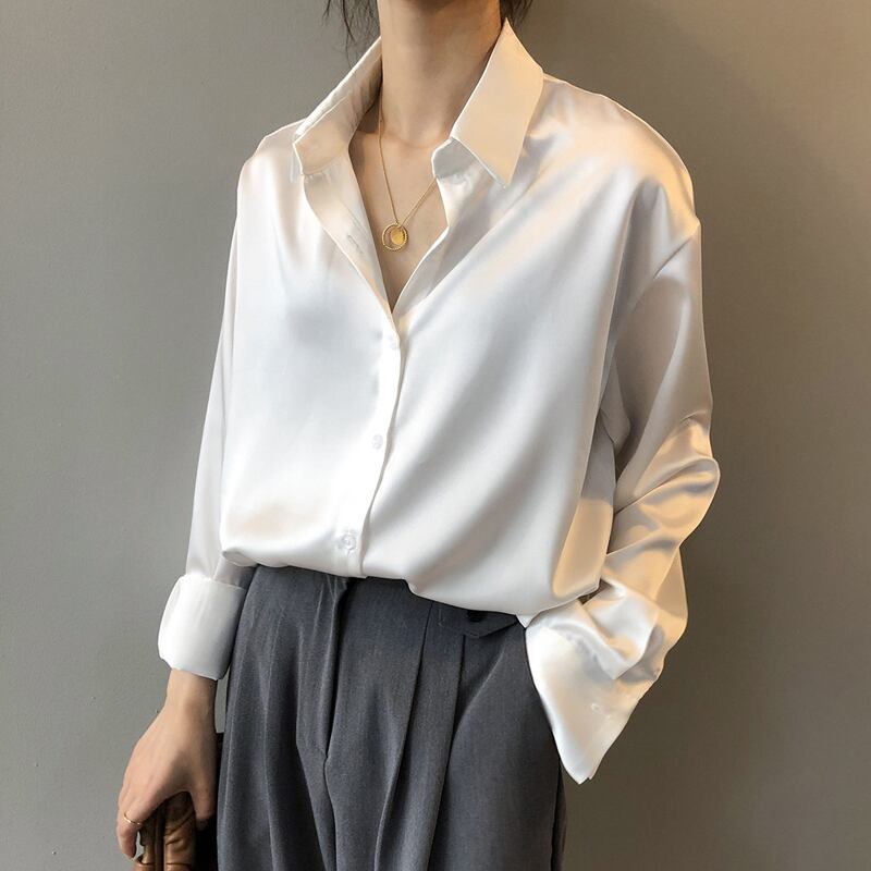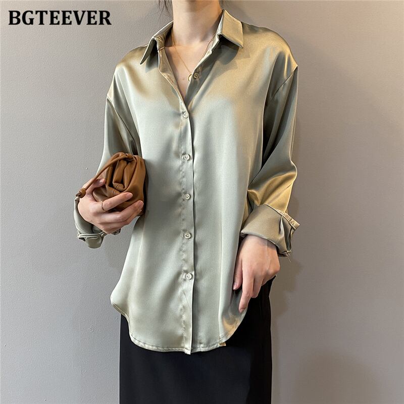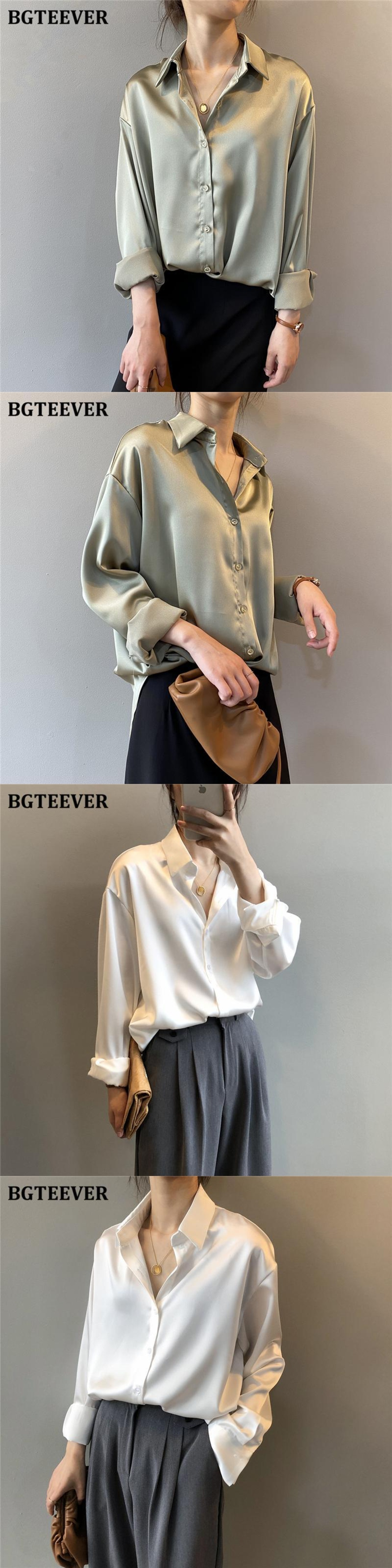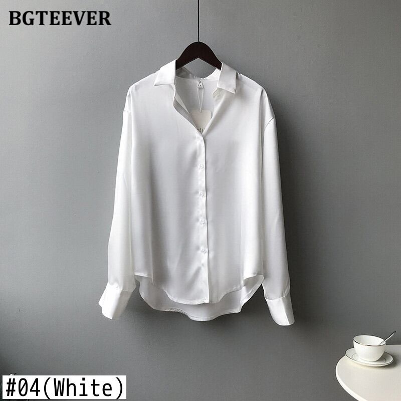 【新作】【送料無料】 BGTEEVERワークウェアフルスリーブステインシャツ女性ターンダウンカラー秋のブラウスルーズホワイトトップスs2020 オータム 秋物 12b143240266176
