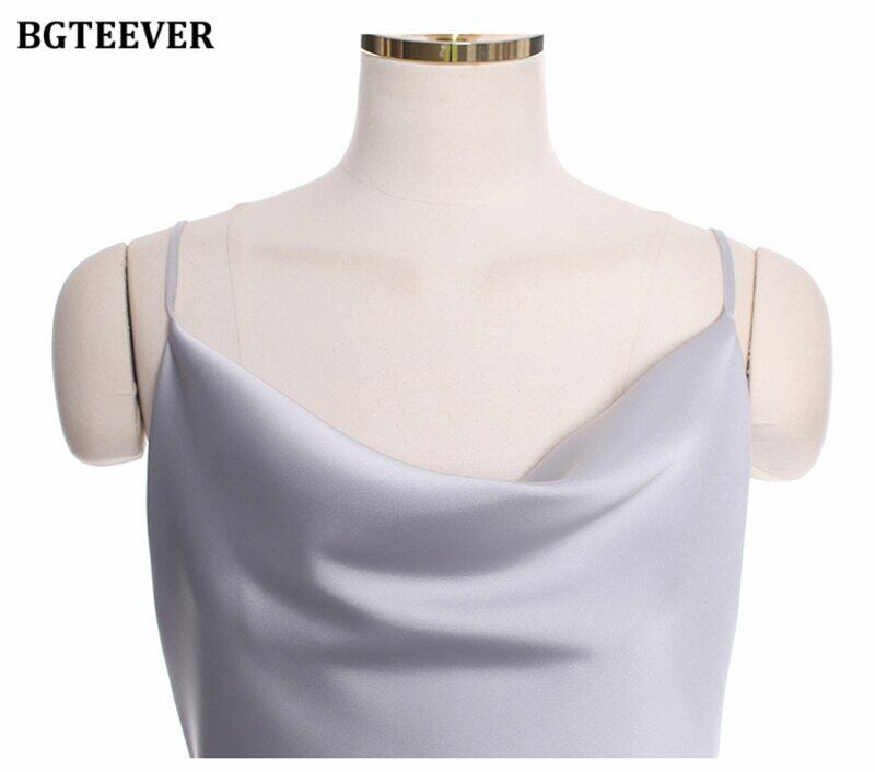 【新作】【送料無料】 BGTEEVERサマースパゲッティストラップレディースサテンドレスノースリーブスリムキャミソールドレスパーティーVestidosfemme 2020 夏物 フェミニン 12b136302736445