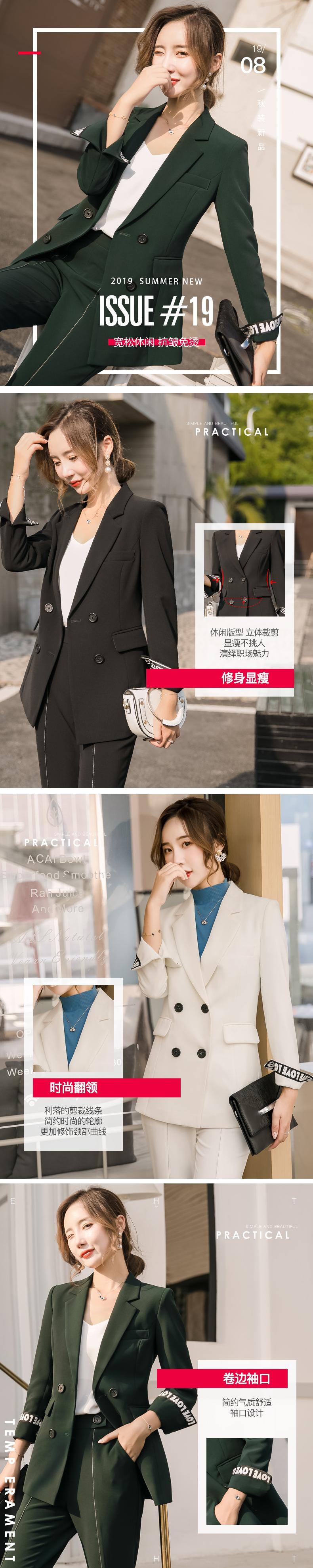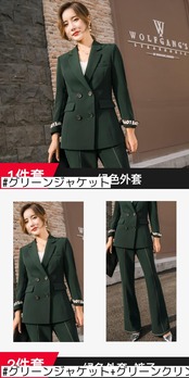 【新作】【送料無料】 スーツスーツ女性2019年秋新しいプロのウェア気質と有能なグリーンスーツフレアパンツツーピースセット-アリババ レッド オータム 秋物 12b366828480496
