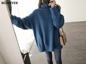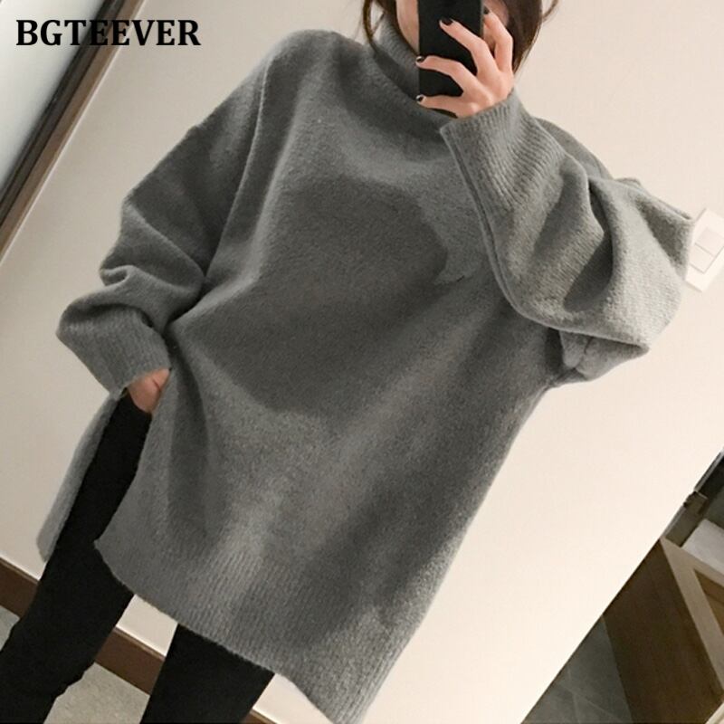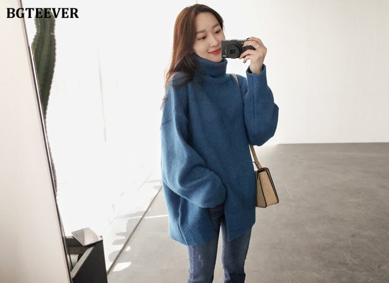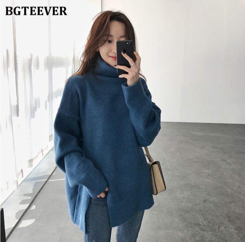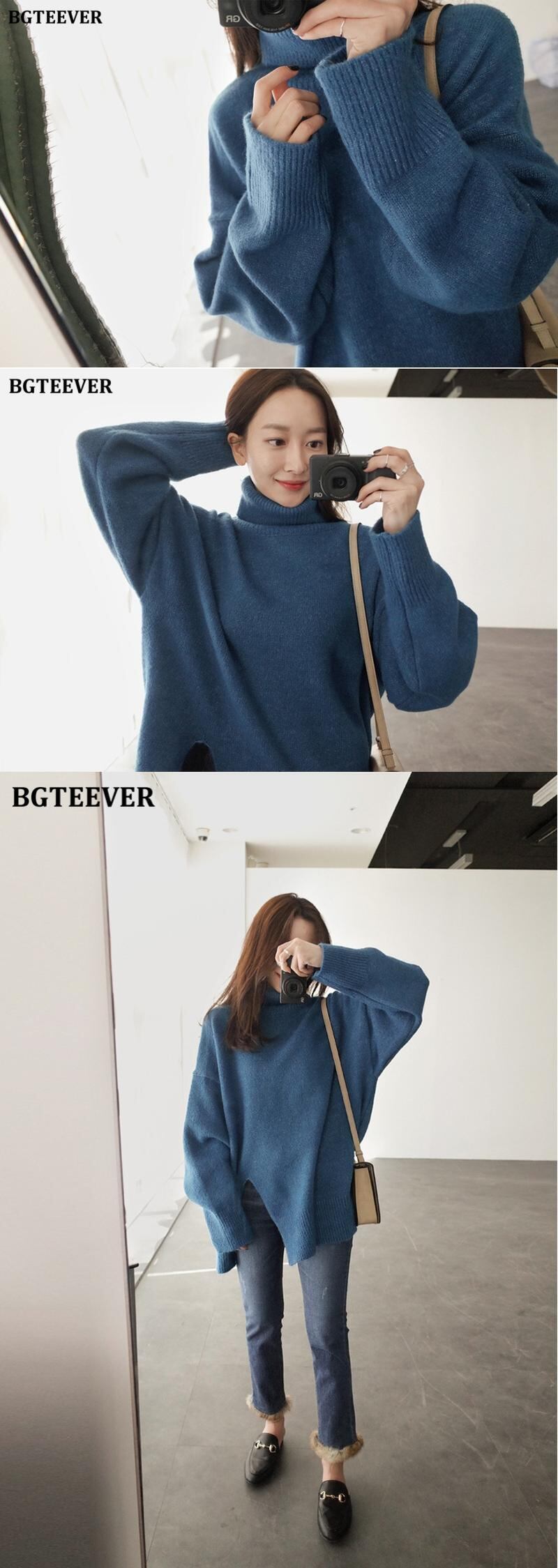 【新作】【送料無料】 BGTEEVER秋冬特大女性ニットセータージャンパータートルネック長袖スプリットソリッドプルオーバージャンパー2020 ロング オータム 秋物 ウィンター 冬物 ソリッドカラー 12b126075537346