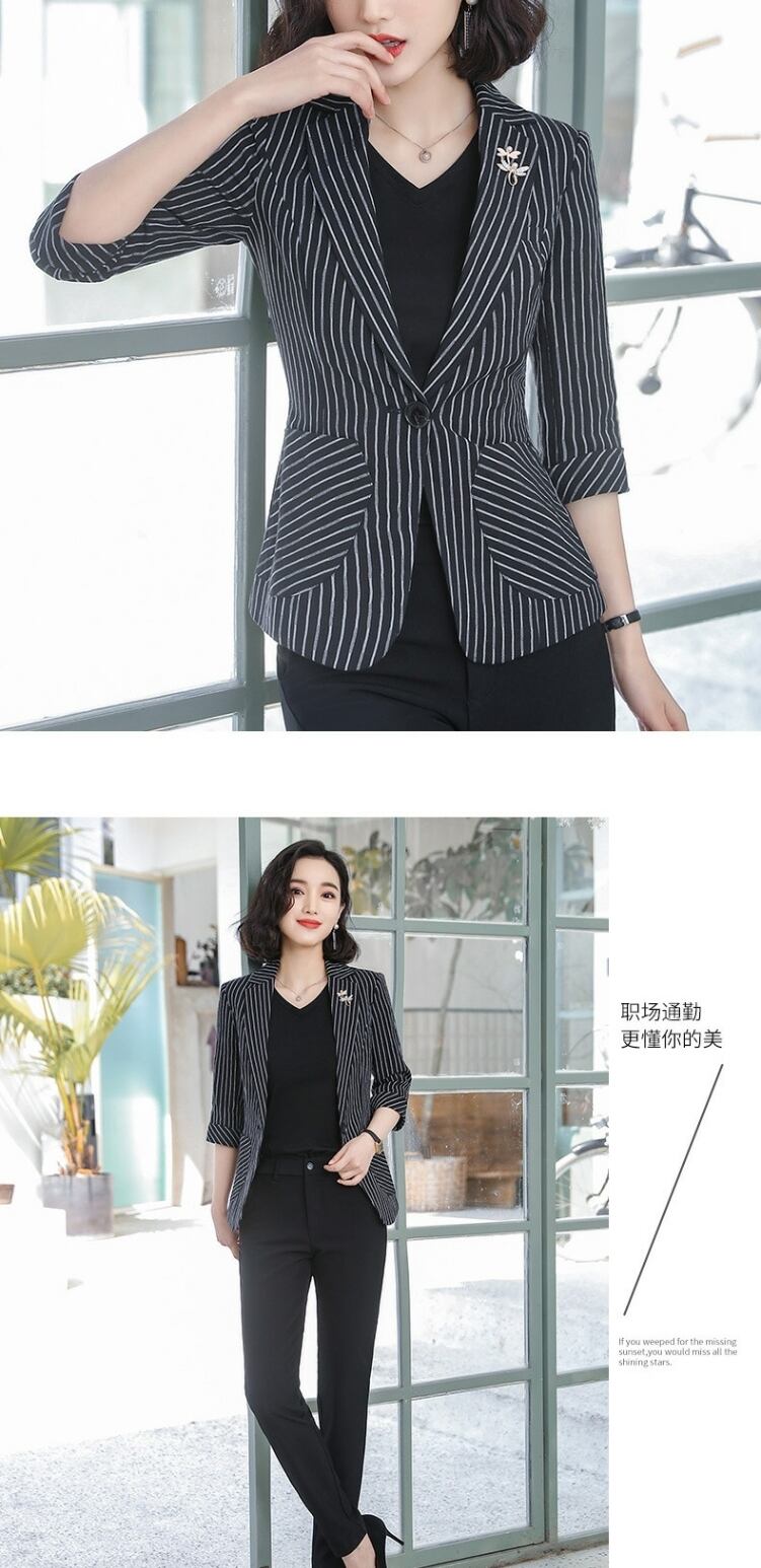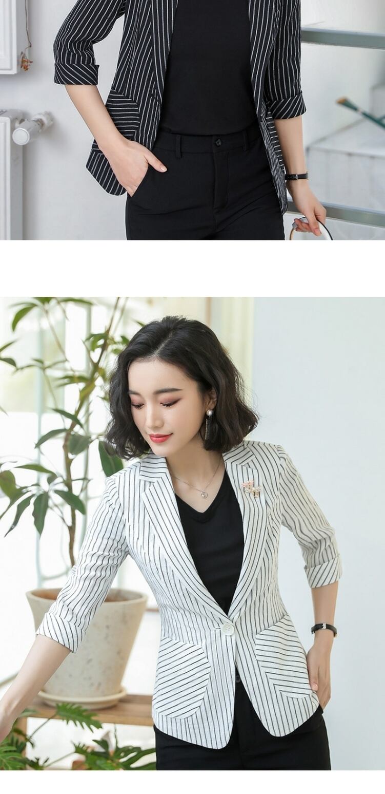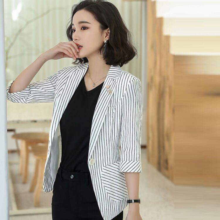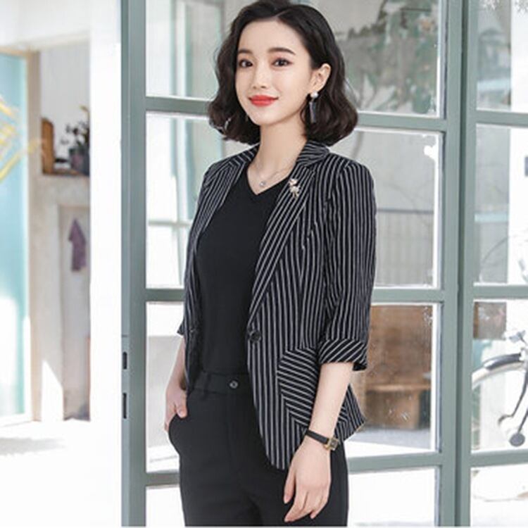 【新作】【送料無料】 2021年のスーツジャケット女性の夏の新しいスリムなファッション薄いスーツプロの気質七分袖ストライプツーリング-アリババ サマー 夏物 12b377938625999