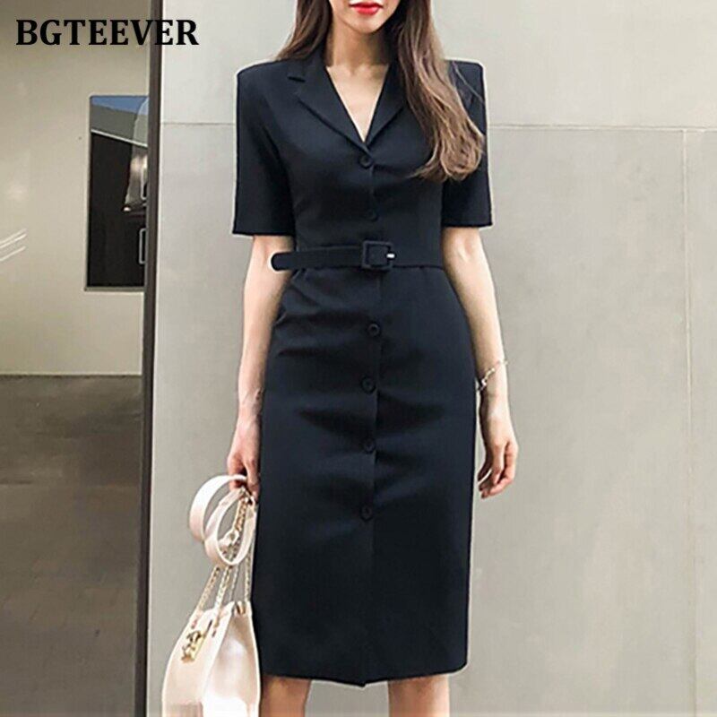 【新作】【送料無料】 BGTEEVER 2020 OfficeVestidos半袖シングルブレストベルト付き女性パッケージヒップドレスサマーワークウェアドレス ショート ハーフスリーブ 夏物 ハーネス 会社 学校 通勤や通学にも 12b1955059154