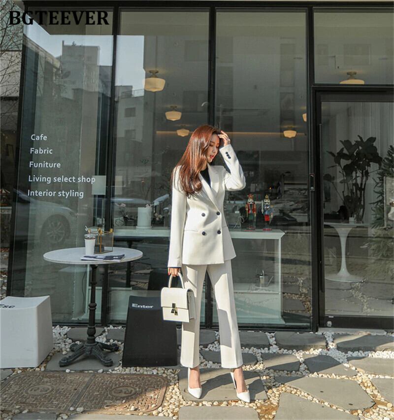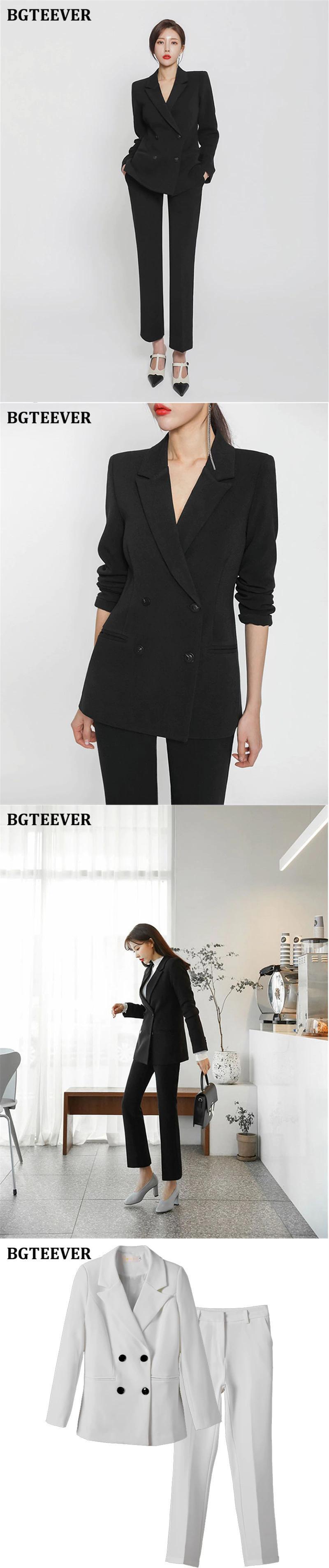 【新作】【送料無料】 BGTEEVER Office Outfits Women Pant Suit Double-breasted Jacket&Slim Pant 2 Pieces Set 2020 Autumn Blazer Set オータム 秋物 スリム 会社 学校 通勤や通学にも 12b158422156056