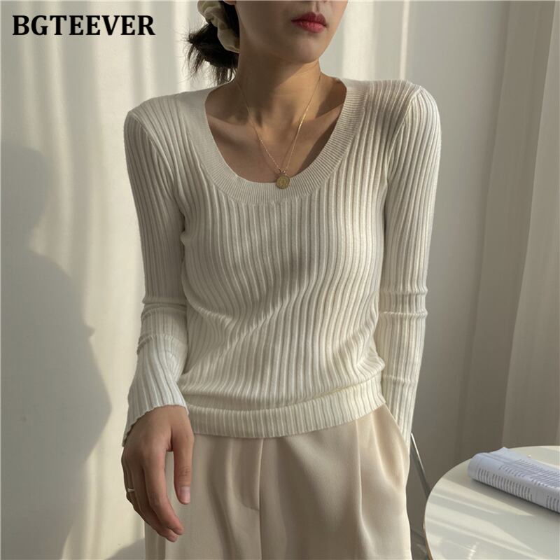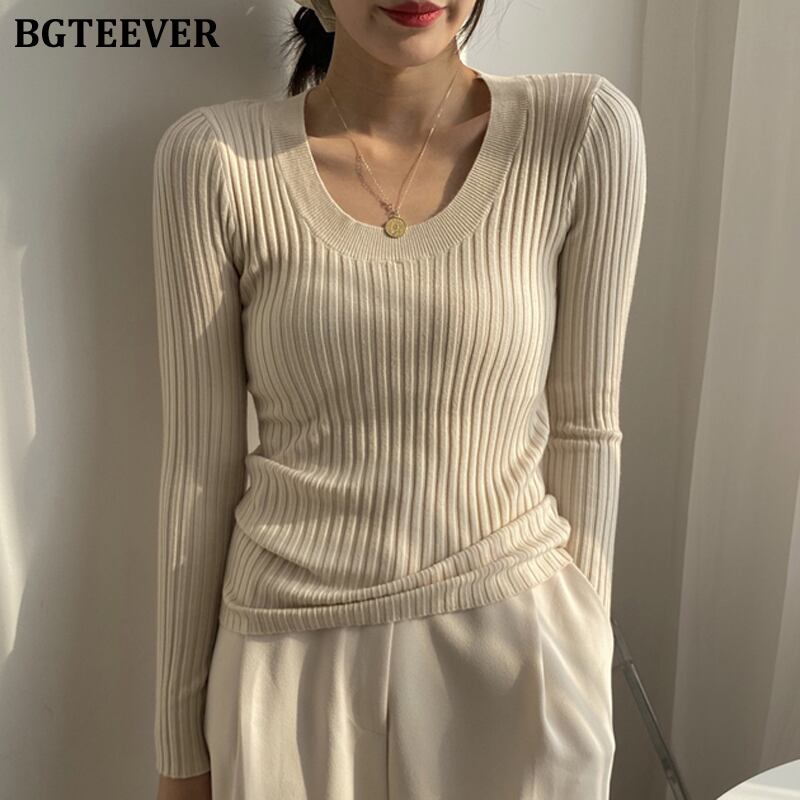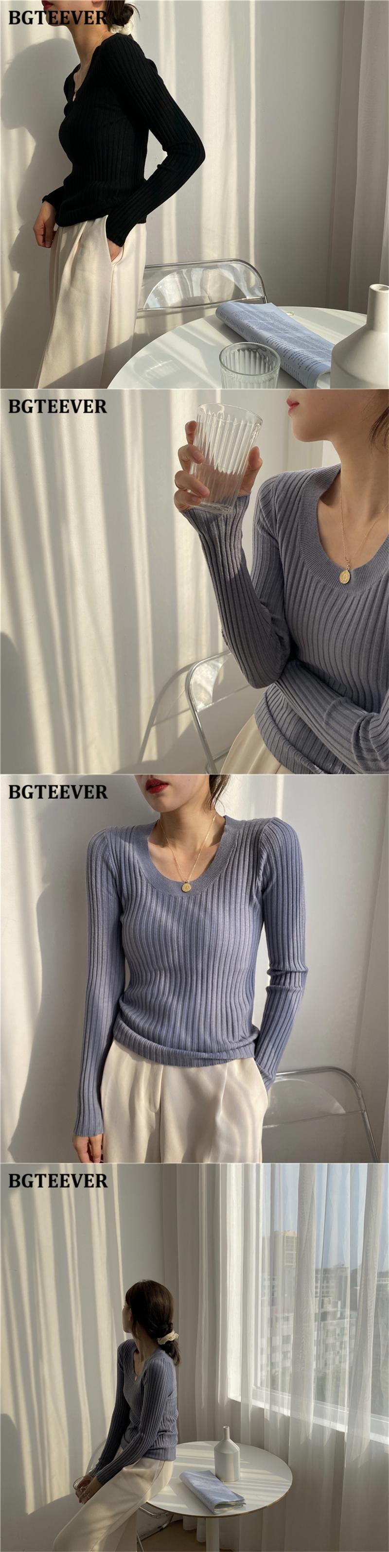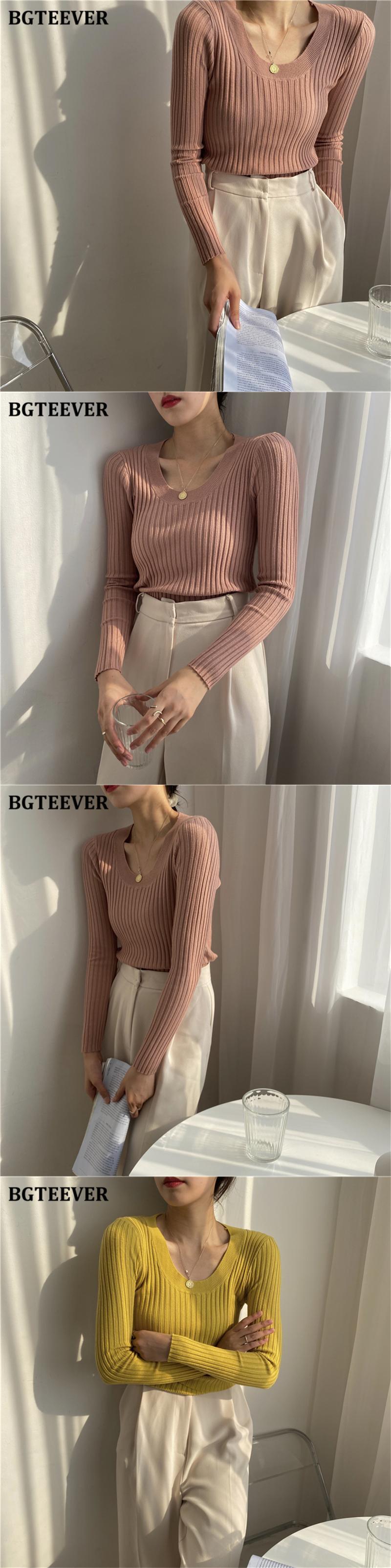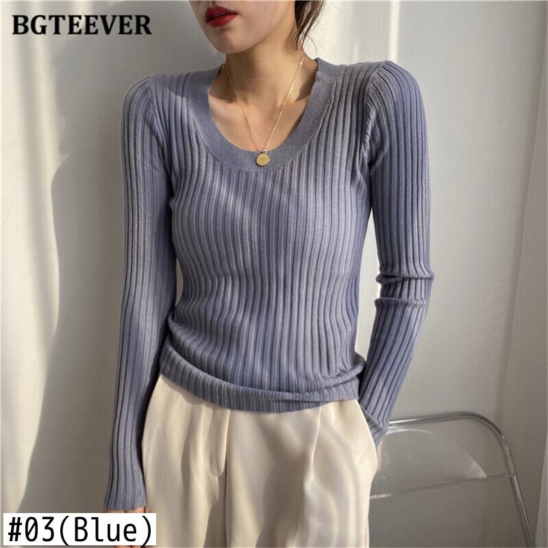 【新作】【送料無料】 BGTEEVERオータムディープOネックレディースベーシックスリムウォームニットトップススキニーストレッチ長袖プルオーバーセーター2020 ロング 秋物 12b192084420998