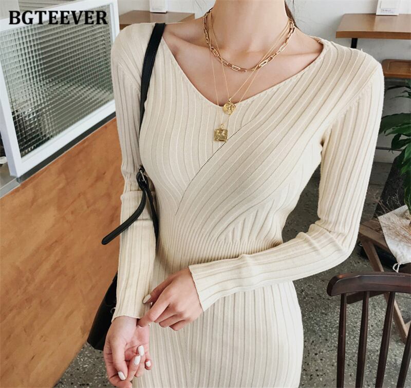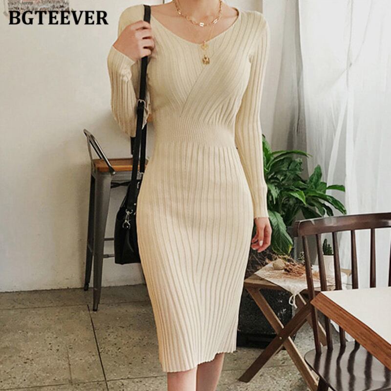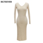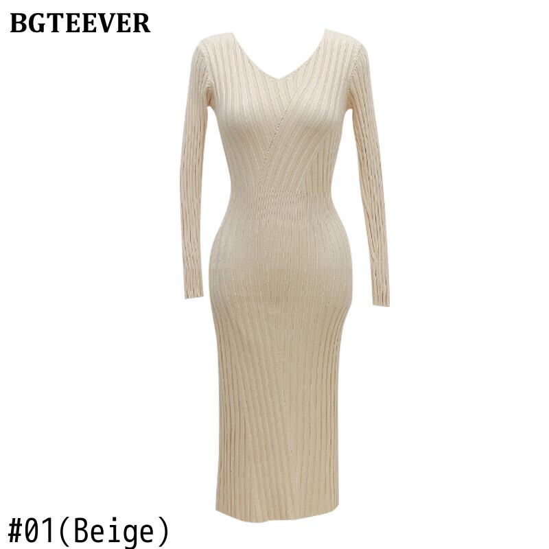 【新作】【送料無料】 BGTEEVERVネックミディボディコンセータードレスレディース秋冬長袖スリムウエストニットワンピース ロング オータム 秋物 ウィンター 冬物 12b190851178179