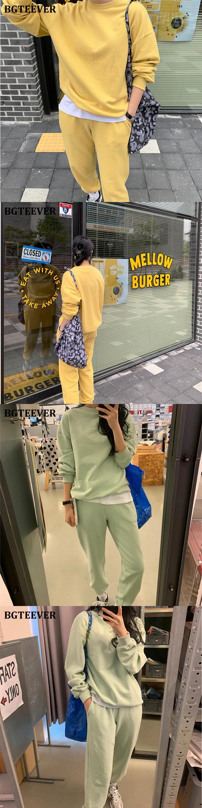 【新作】【送料無料】 BGTEEVERレディーストラックスーツソリッドスウェットシャツ&ハーレムパンツ2020秋冬2ピースセットレディース厚手のフリースパンツスーツ オータム 秋物 ウィンター 冬物 ソリッドカラー 12b186775473978