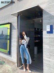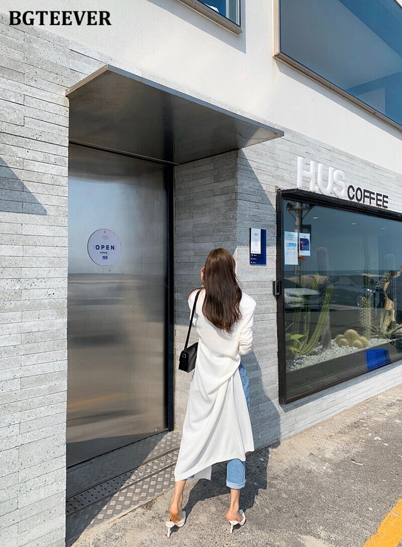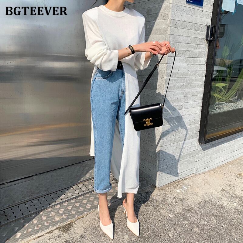 【新作】【送料無料】 BGTEEVERシックなOネック長袖ルーズニットプルオーバーロングスプリットレディースセーター2020秋のニットジャンパー オータム 秋物 12b120756023262