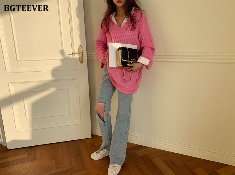 【新作】【送料無料】 BGTEEVER秋の厚手のVネックセータージャンパー2020フルスリーブルーズストライプニットプルオーバーウォームニットウェア オータム 秋物 12b113477721611