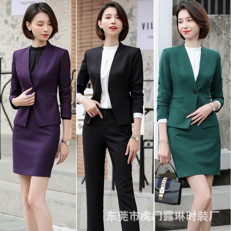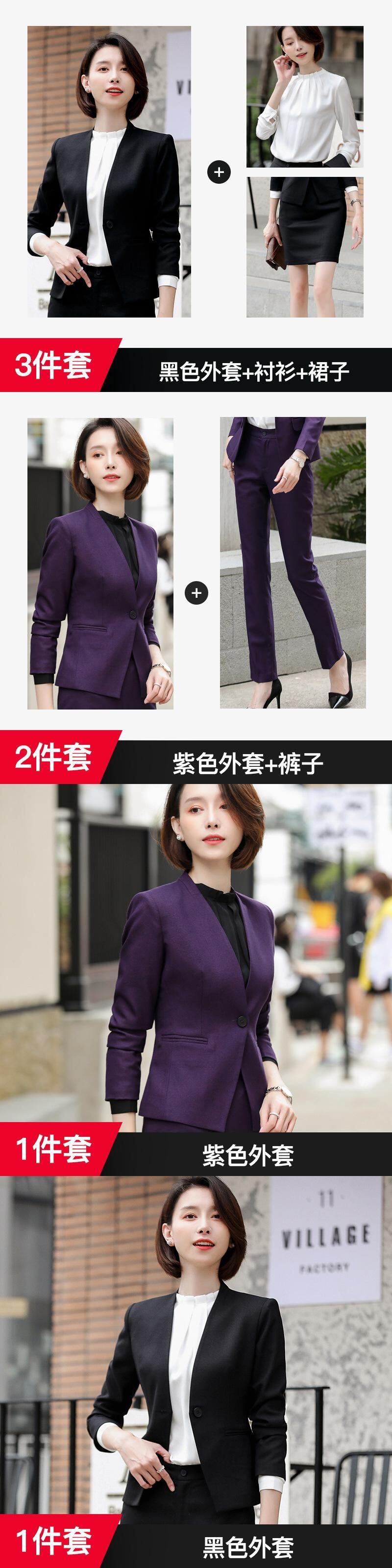 【新作】【送料無料】 プロのスーツスーツ女性の新しい秋と冬の気質スリムな英国スタイルのolサラリーマン紫襟なしマルスーツ-アリババ オータム 秋物 ウィンター 冬物 パープル 会社 学校 通勤や通学にも 12b36605887920