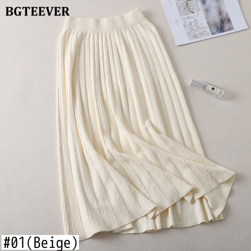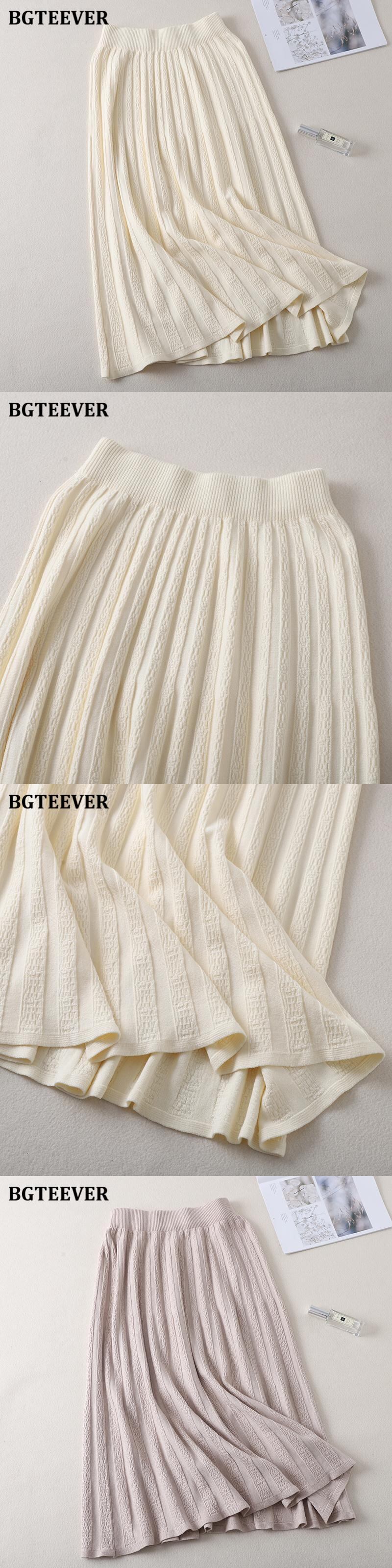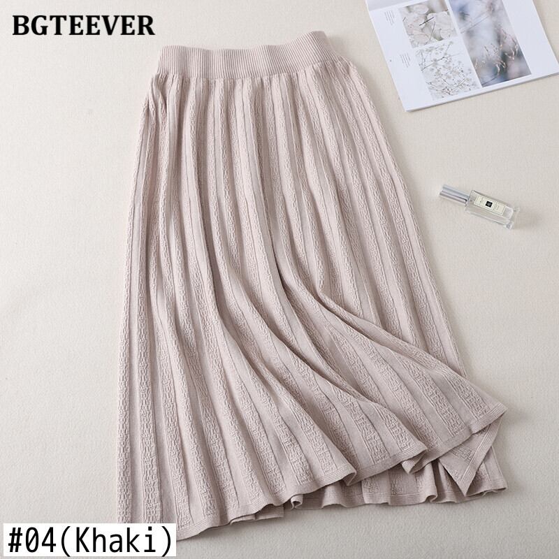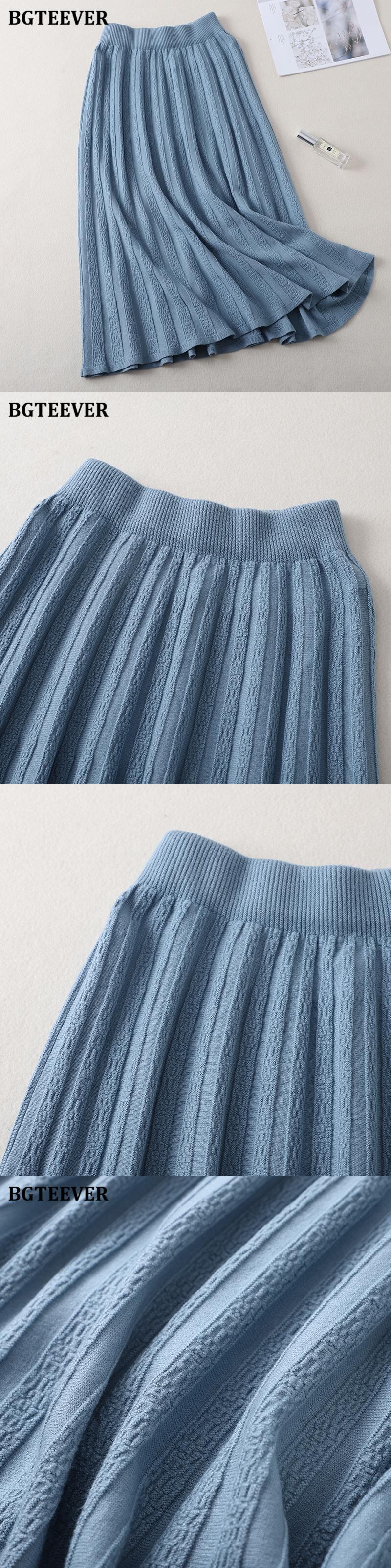 【新作】【送料無料】 BGTEEVER厚手の暖かい女性のプリーツスカート秋冬伸縮性ウエストニットセータースカートロングアラインミディパープルスカート エラスティック オータム 秋物 ウィンター 冬物 Aライン 12b125451855955