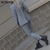 【新作】【送料無料】 BGTEEVERオフィスパンツスーツダブルブレザー&エラスティックウエストペンシルパンツ20202ピースセットレディースブレザーセット 伸縮 会社 学校 通勤や通学にも 12b153817494135
