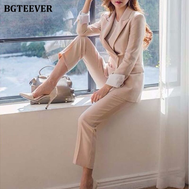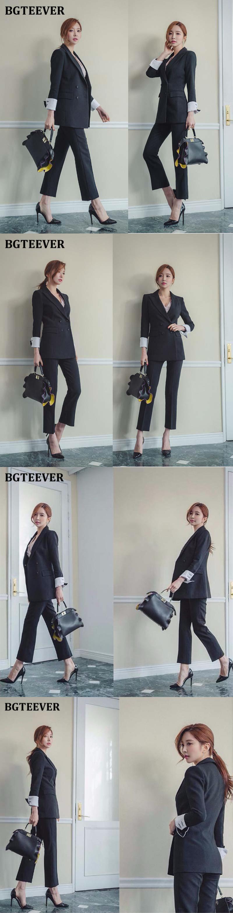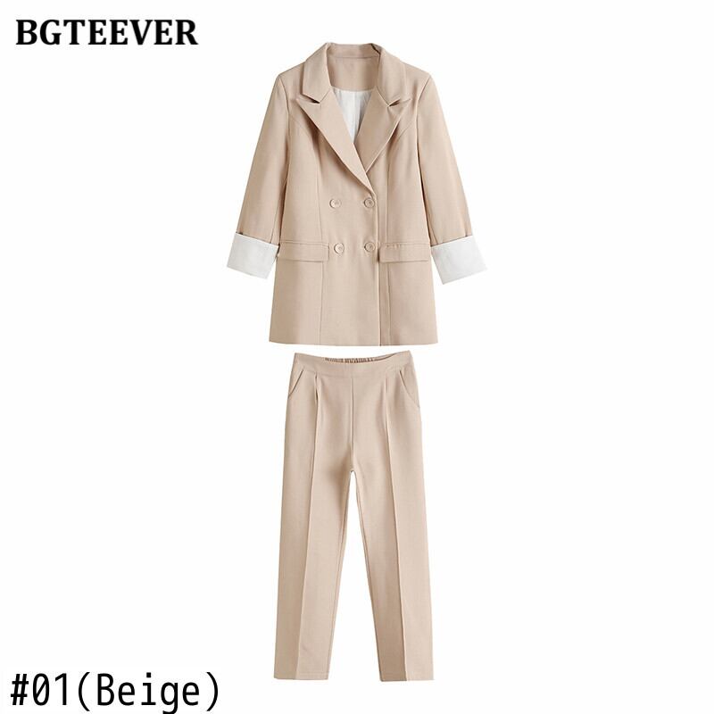 【新作】【送料無料】 BGTEEVER秋2ピースブレザーセットレディースパンツスーツダブルブレストブレザー&ペンシルパンツ2020ワークウェアスーツ オータム 秋物 12b114784330573