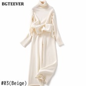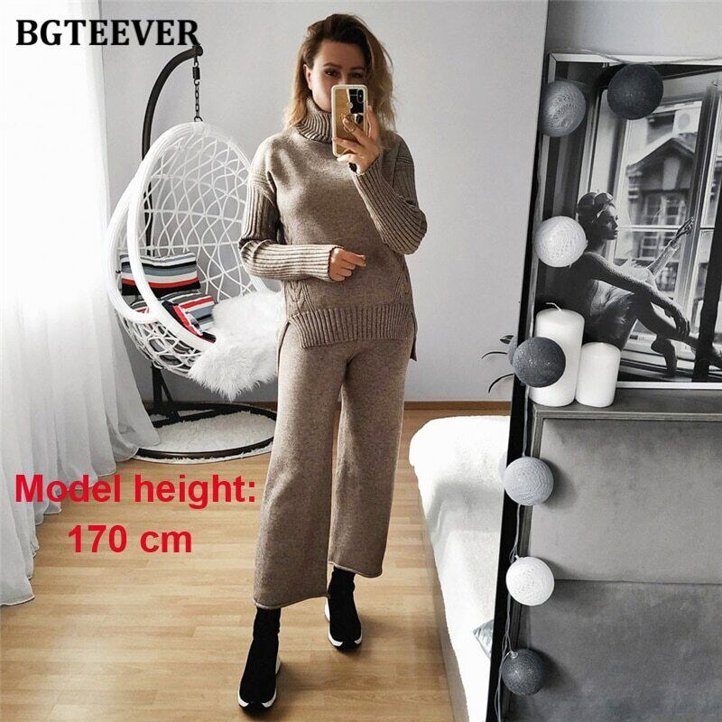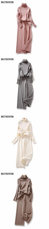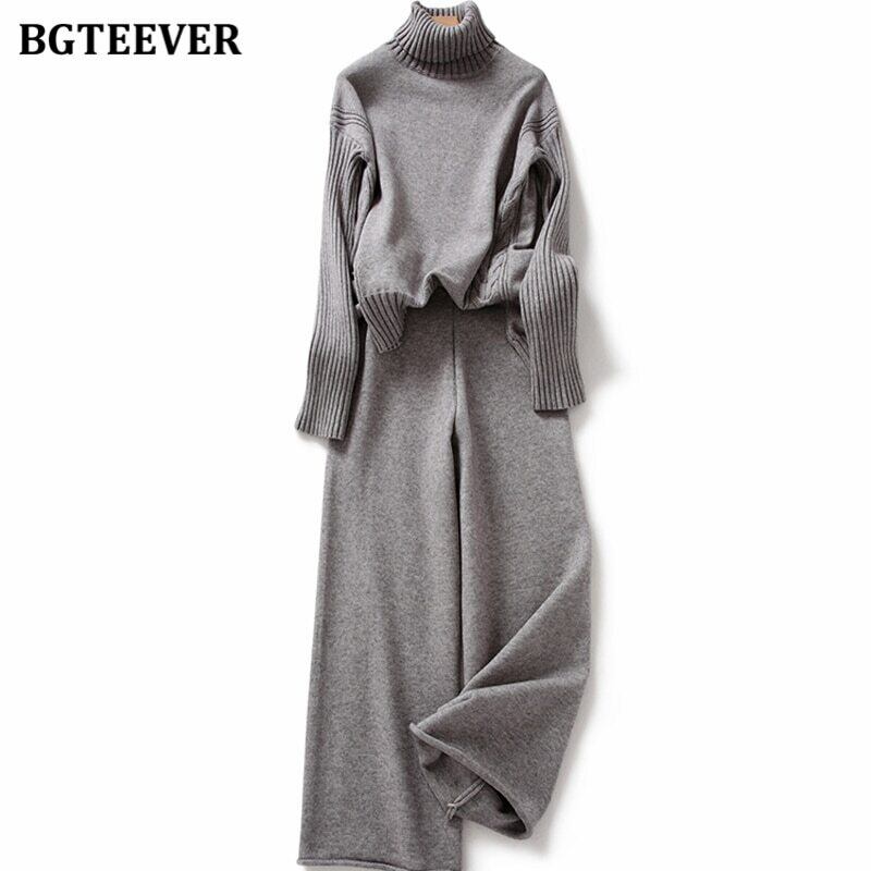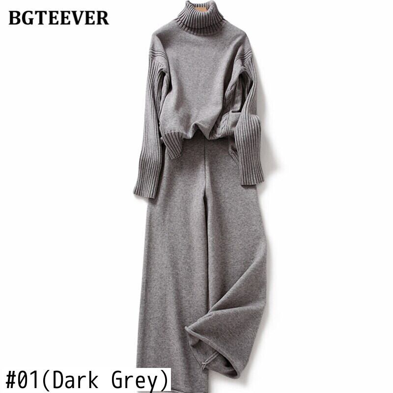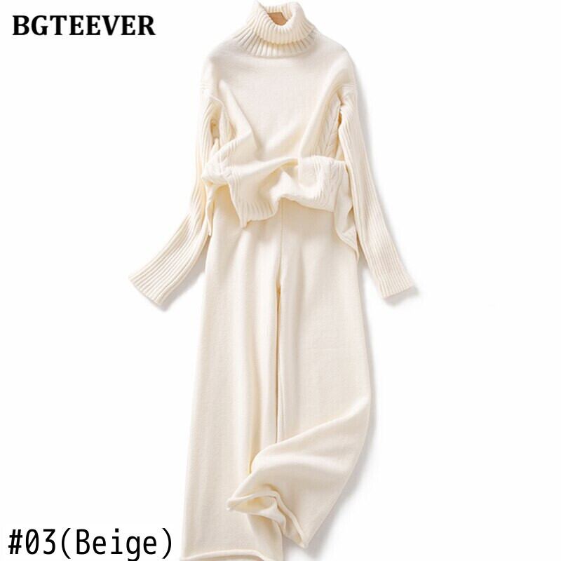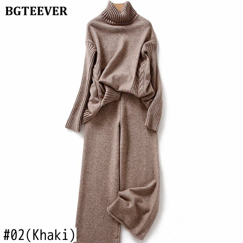 【新作】【送料無料】 BGTEEVER秋冬厚手ニット2点セット女性タートルネックプルオーバーセーター&ワイドレッグパンツ2020セーターセット オータム 秋物 ウィンター 冬物 ワイドパンツ 12b180750625542