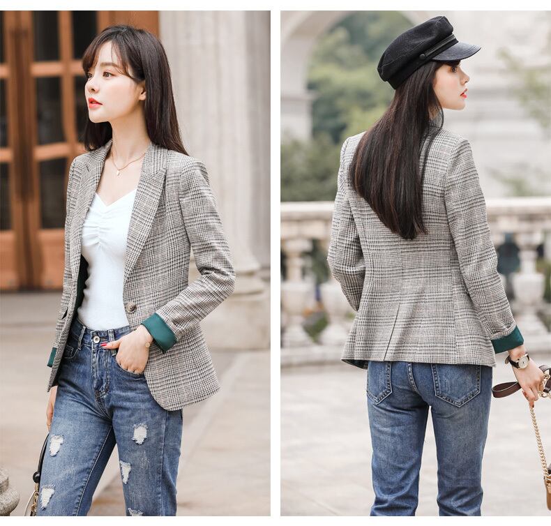 【新作】【送料無料】 2020スモールスーツジャケットレディース秋ニュースタイルチェック柄スリム気質スーツ長袖プロブリティッシュスタイルオーバーオール-アリババ ロング オータム 秋物 12b366022895102