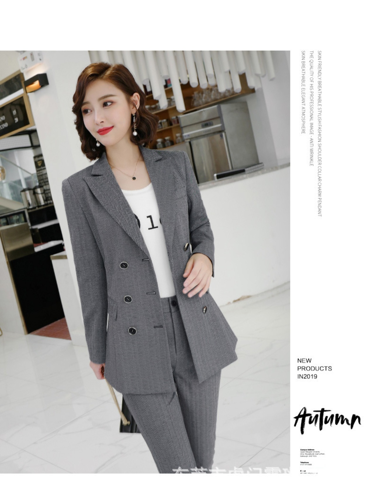 色:グレーのジャケット+パンツ,シングルグレージャケット,お揃いのシングルパンツ