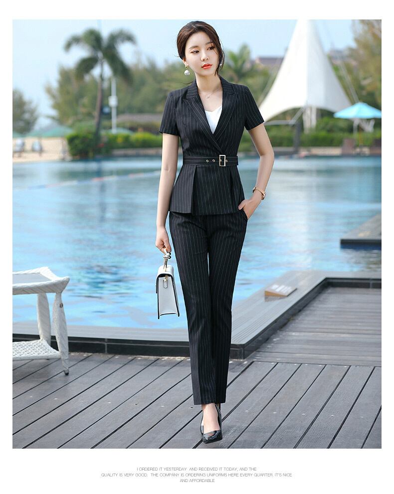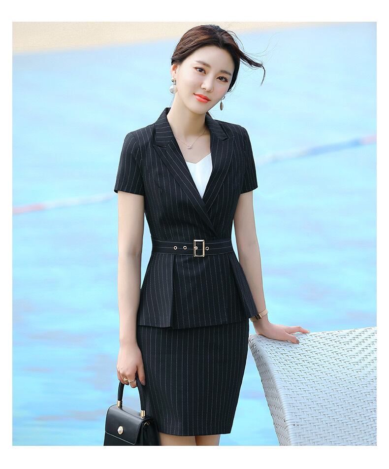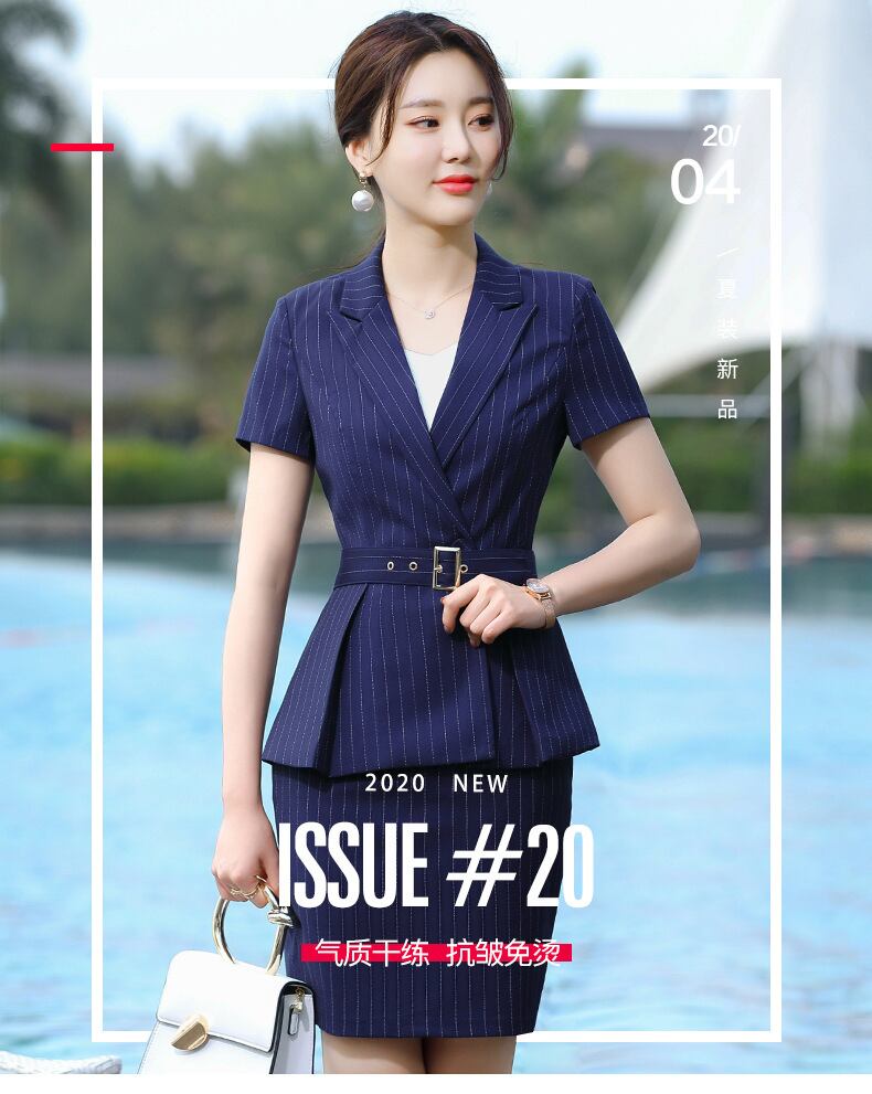 【新作】【送料無料】 サマースーツ女性ファッションツーピーススーツ2020新しい気質スーツストライプ半袖マルスーツスカートオーバーオール-アリババ ショート ハーフスリーブ 夏物 12b372094207368