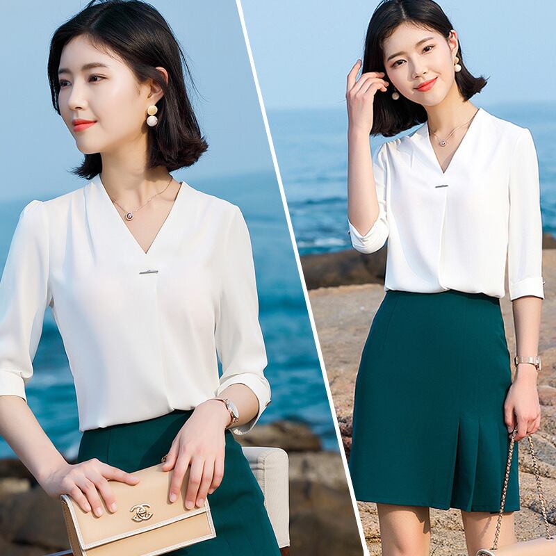 【新作】【送料無料】 ルーズシャツスカート2020新しいVネックシフォン女性夏シフォン野生気質の女神ファンデザインセンス-アリババ サマー 夏物 12b354709404480