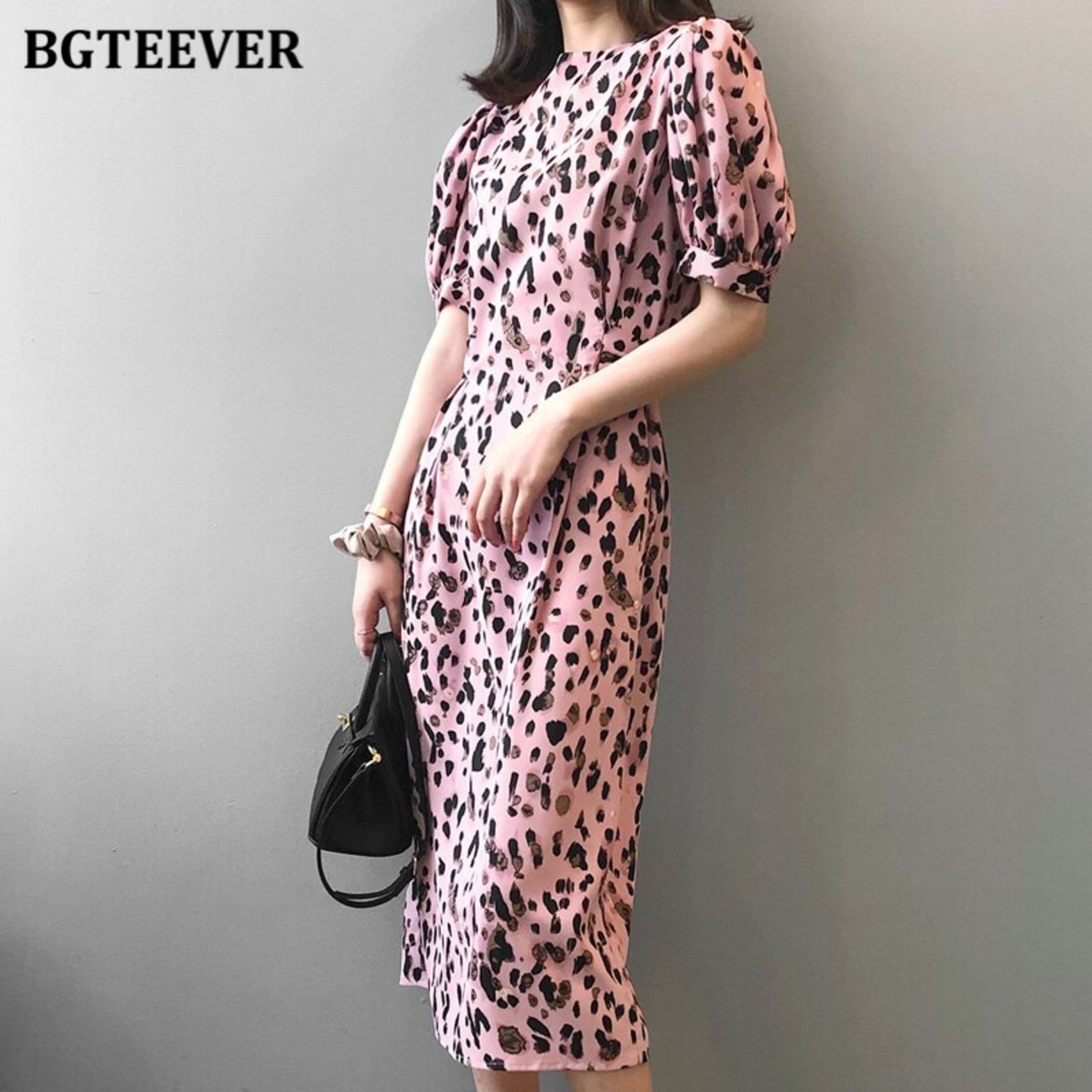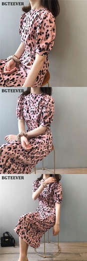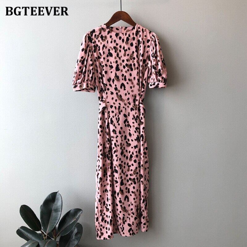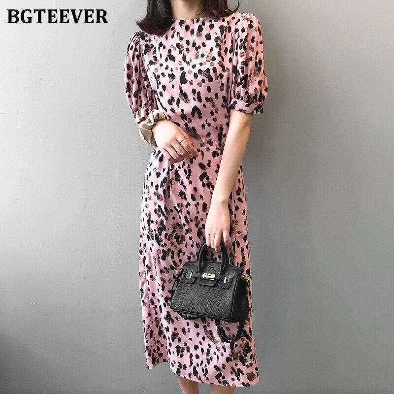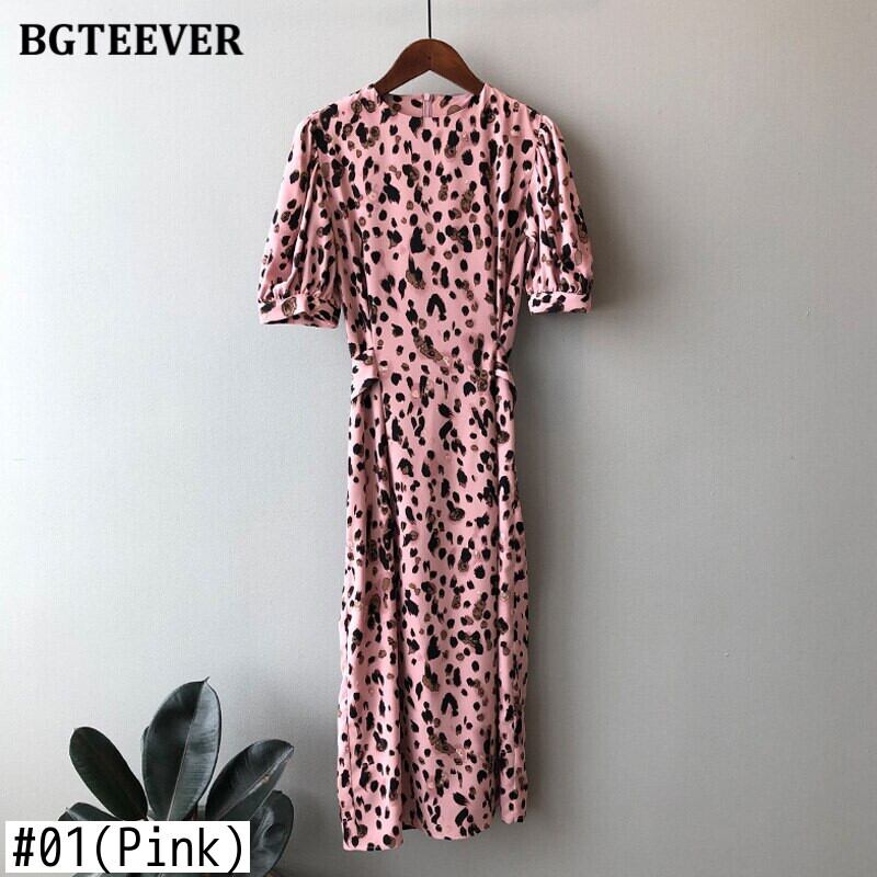 【新作】【送料無料】 BGTEEVERサマーレオパードプリントドレスOネックパフスリーブレースアップレディースドレス2020Oネックルーズヴェスティドス 夏物 12b142017087665