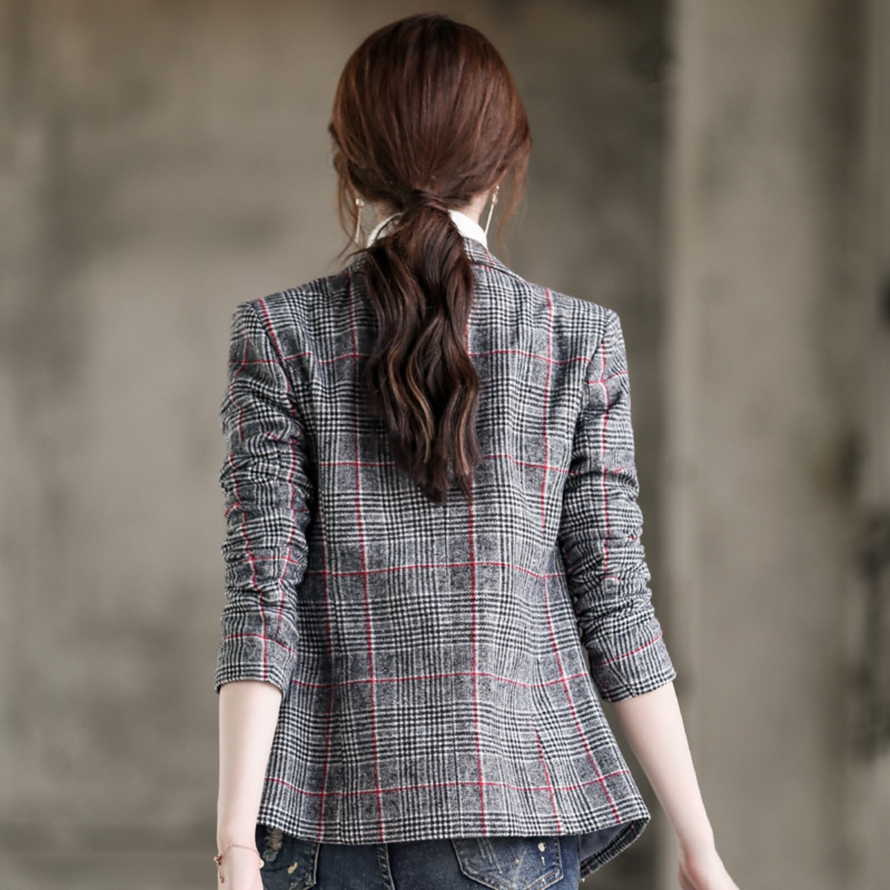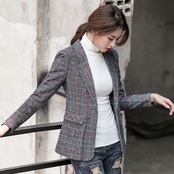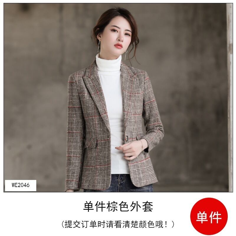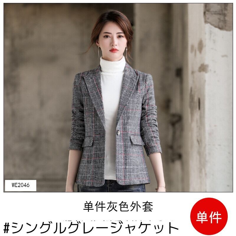 【新作】【送料無料】 格子縞のスーツジャケット女性の2021年春と秋新しいスタイルの英国スタイルの長袖スリムな小さなスーツジャケット-アリババ ロング スプリング 春物 オータム 秋物 12b343080980299