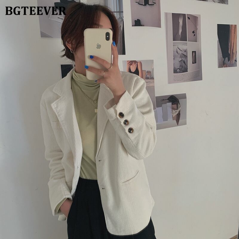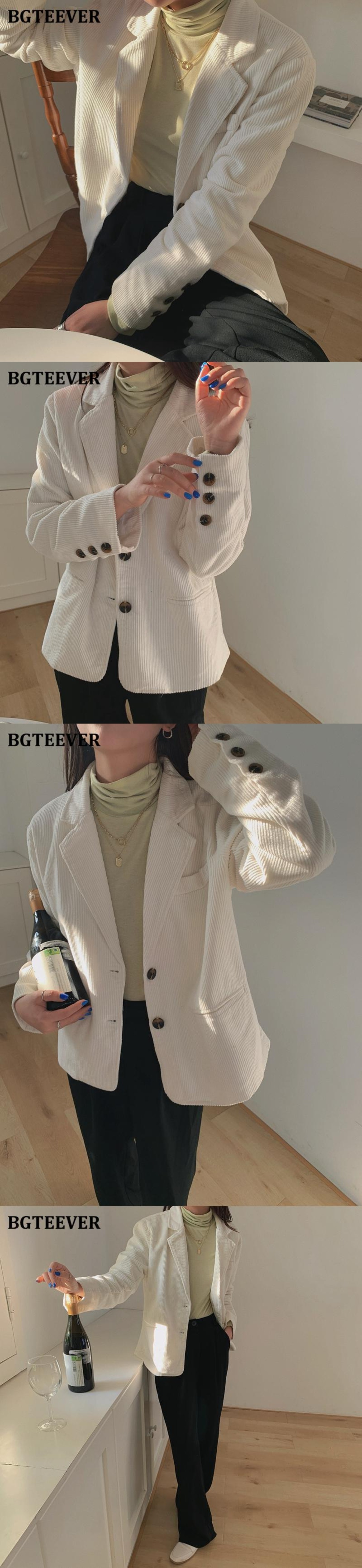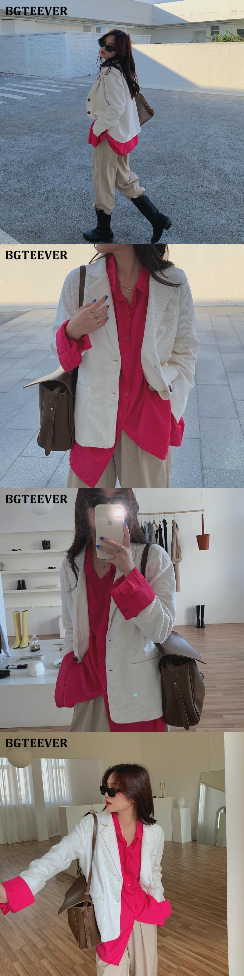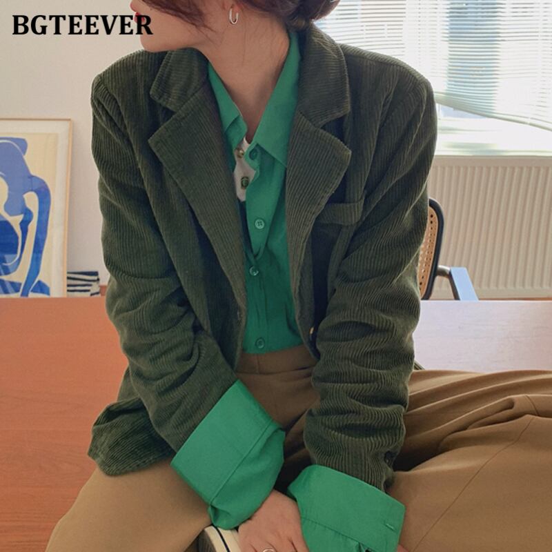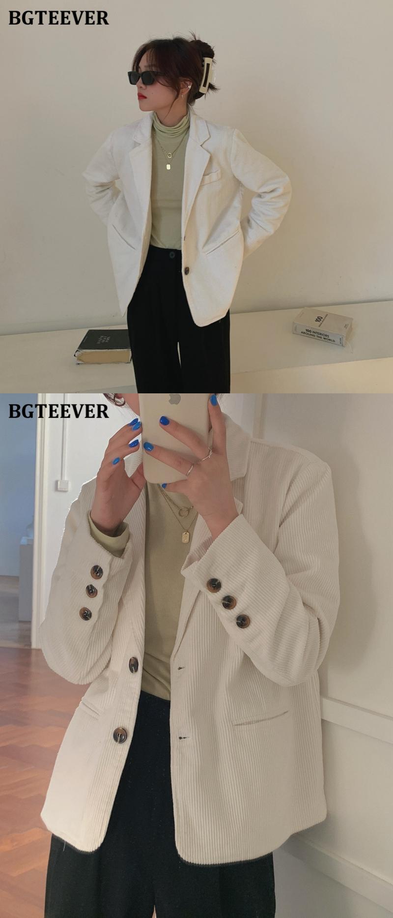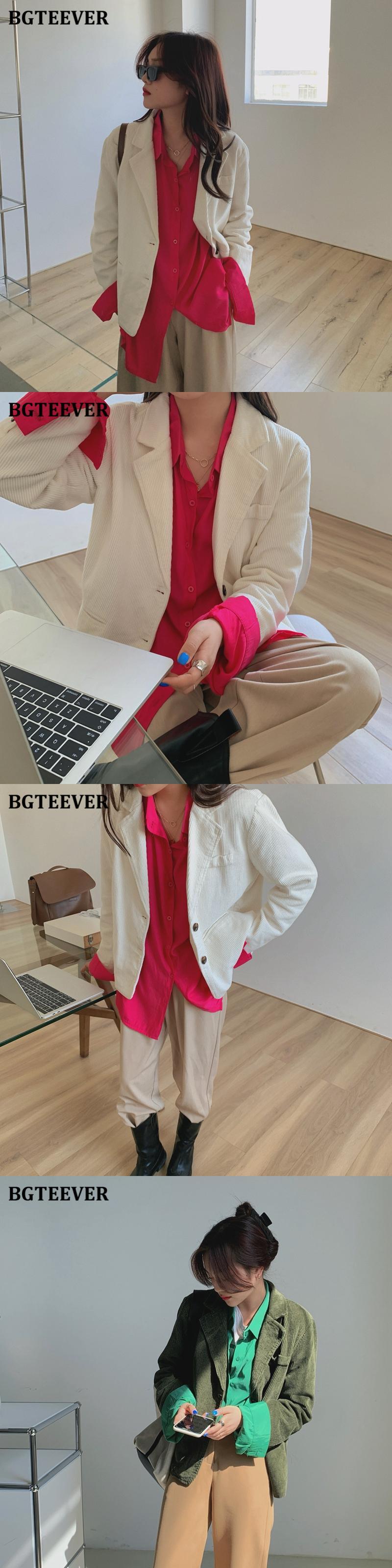 【新作】【送料無料】 BGTEEVERスタイリッシュシックな女性シングルブレストコーデュロイジャケットヴィンテージ長袖ルーズブレイザー2021春のスーツコート ロング スプリング 春物 ビンテージ 12b141173047699