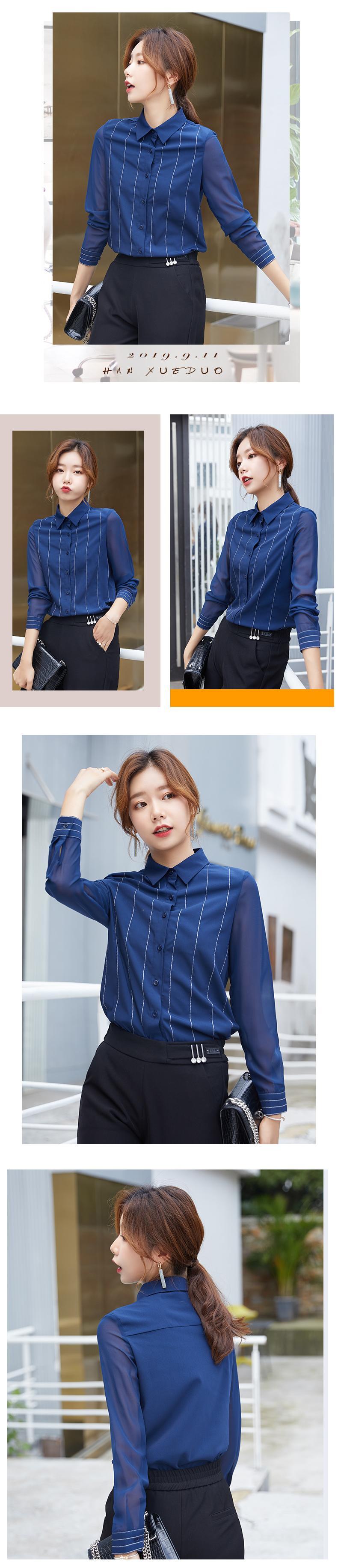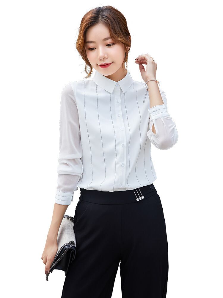 【新作】【送料無料】 ホワイトシャツレディース2020年秋の新製品ファッションストライプ長袖トップススタイルスリムフィットオールマッチベースプロシャツ-アリババ ロング オータム 秋物 12b344236054067