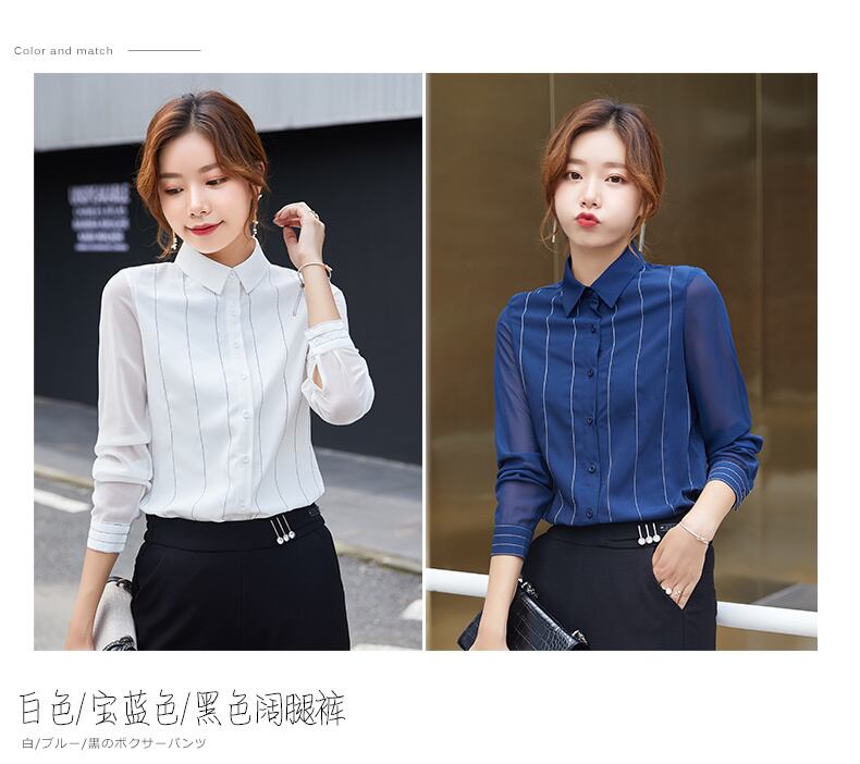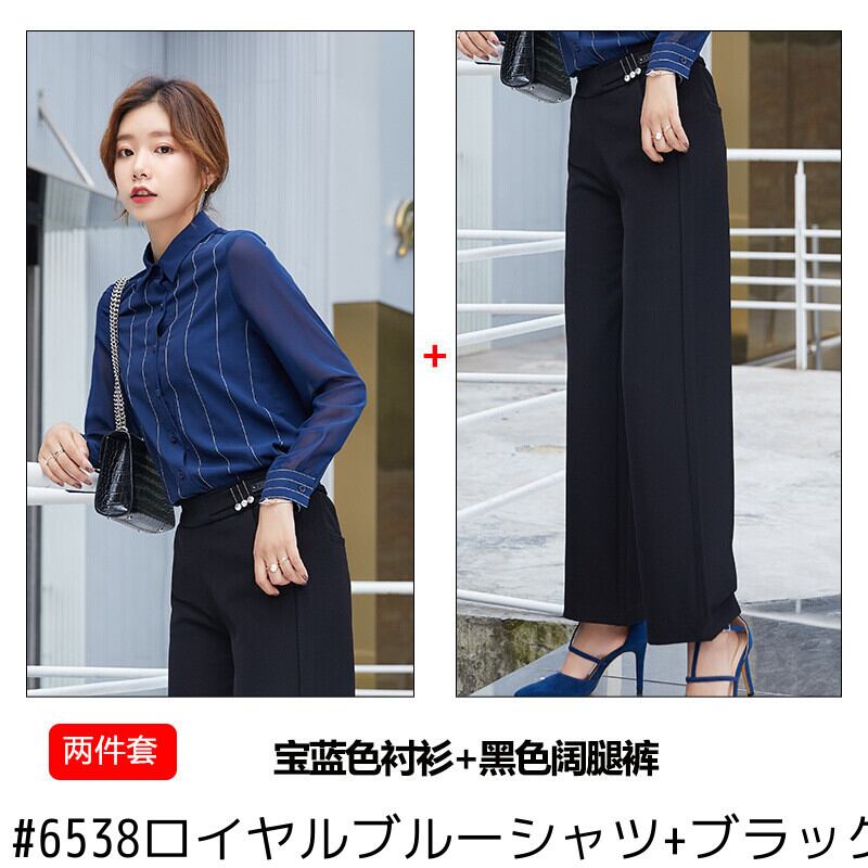 色:6538白いシャツ,6538ロイヤルブルーシャツ,6538白いシャツ+黒いワイドレッグパンツ,6538ロイヤルブルーシャツ+ブラックワイドレッグパンツ