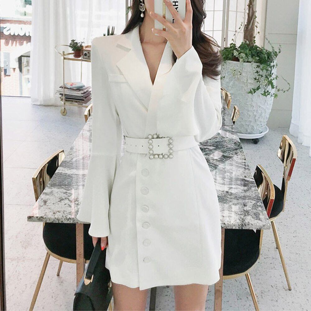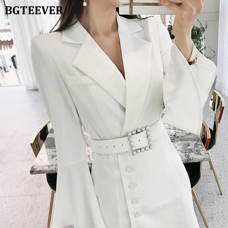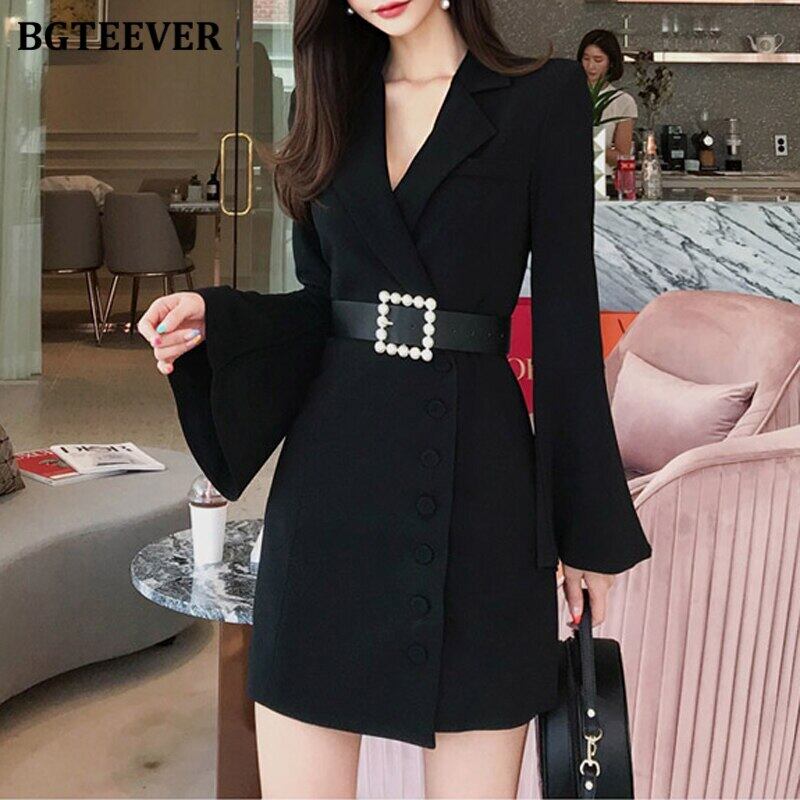 【新作】【送料無料】 BGTEEVERオフィスミニドレスシングルブレストベルト付き女性スーツドレスフレアスリーブ作業服ショートVestidos ハーネス 会社 学校 通勤や通学にも 12b12743777038