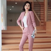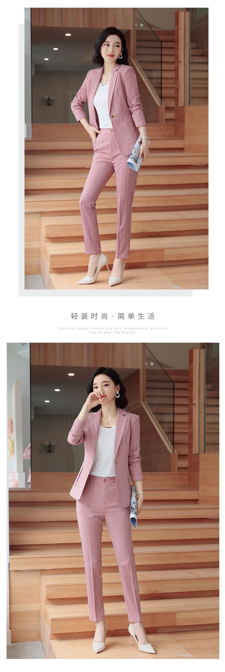 【新作】【送料無料】 作業服女性のプロの服ピンクの縞模様の気質のスーツスーツ2021年秋新しいサラリーマンの作業服-アリババ オータム 秋物 ストライプ 会社 学校 通勤や通学にも 12b361417000123