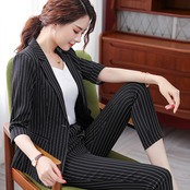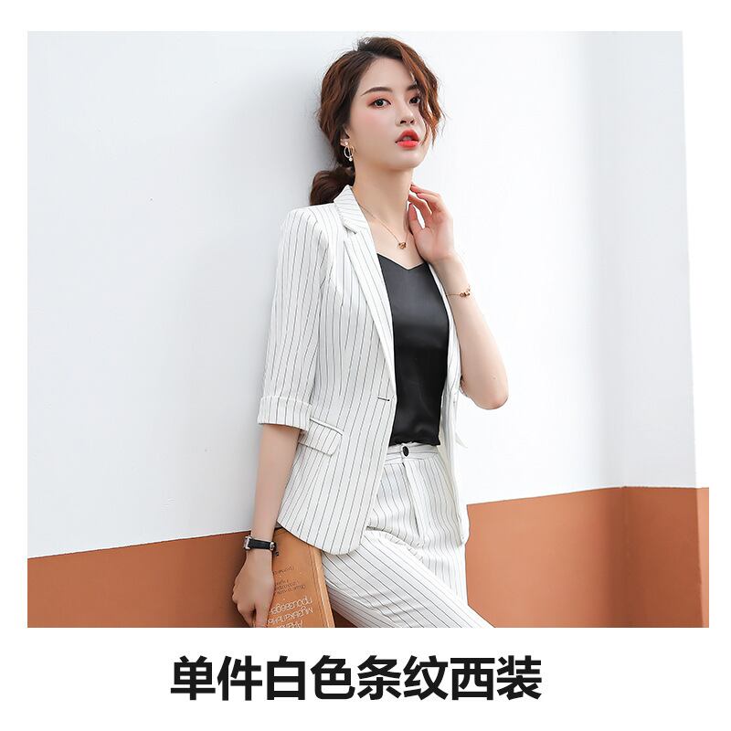 【新作】【送料無料】 2020年春夏新作レディースファッションカジュアルミッドスリーブスモールスーツツーピースカーフパンツスーツメスホワイトストライプ-アリババ スプリング 春物 サマー 夏物 12b368728227709