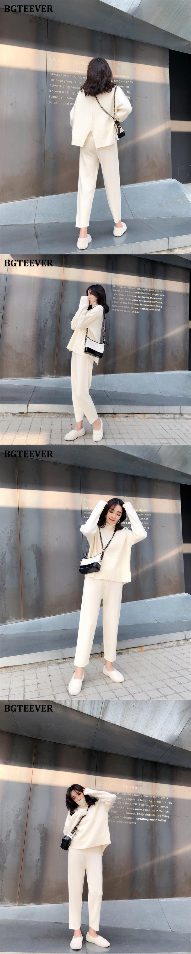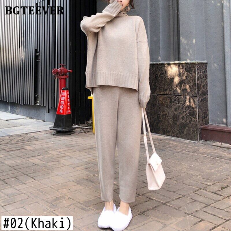 【新作】【送料無料】 BGTEEVERシックな女性のセーターセットタートルネックプルオーバー&弾性ウエストハーレムパンツ2020秋冬ニット2ピースセット エラスティック 伸縮 オータム 秋物 ウィンター 冬物 12b160642105290