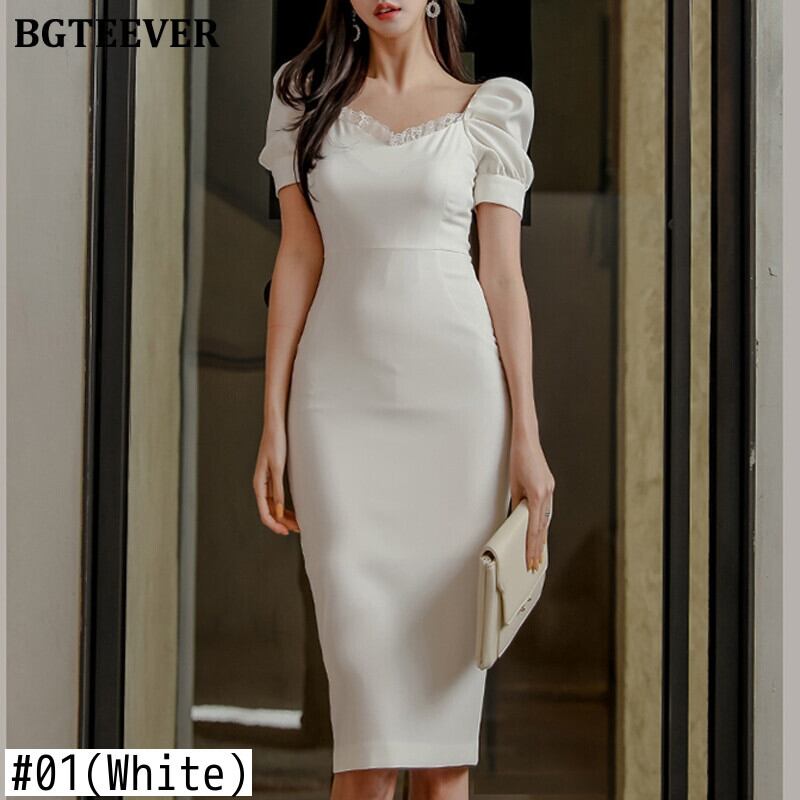 【新作】【送料無料】 BGTEEVERオフィスウェアスクエアカラーレースパッチワークレディースパッケージヒップドレスパフスリーブスリムウエストシース Summer サマー 夏物 スクウェア 会社 学校 通勤や通学にも 12b19113327567