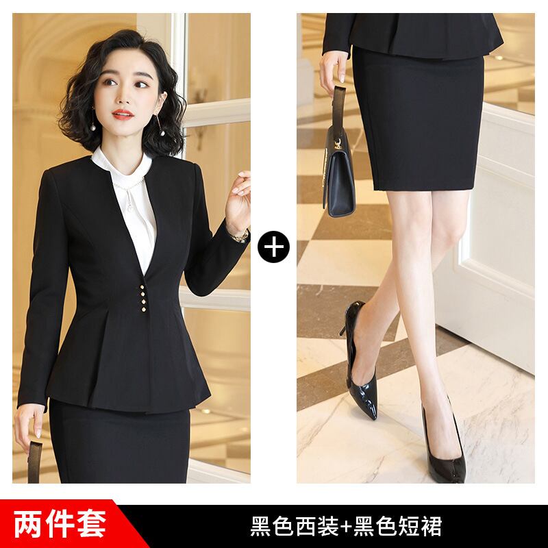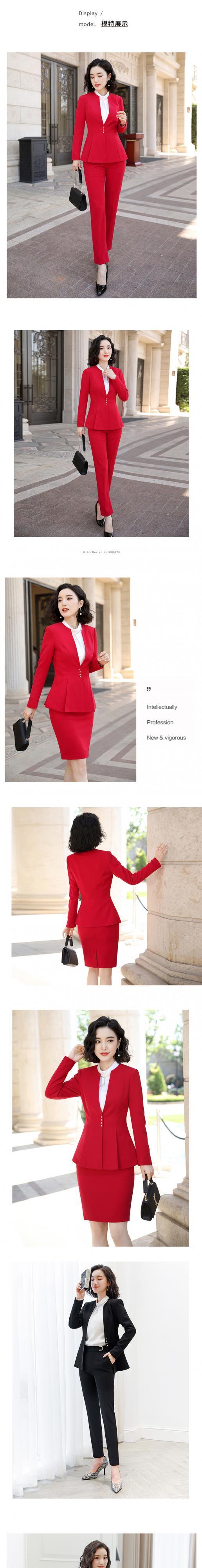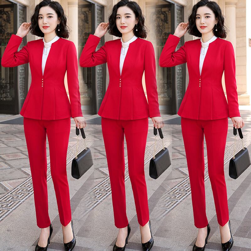 【新作】【送料無料】 赤い襟なしスーツ女性長袖2020春と秋の新しいプロの摩耗気質ツーピーススリムスーツトレンド-アリババ ロング レッド スプリング 春物 オータム 秋物 12b369065433176