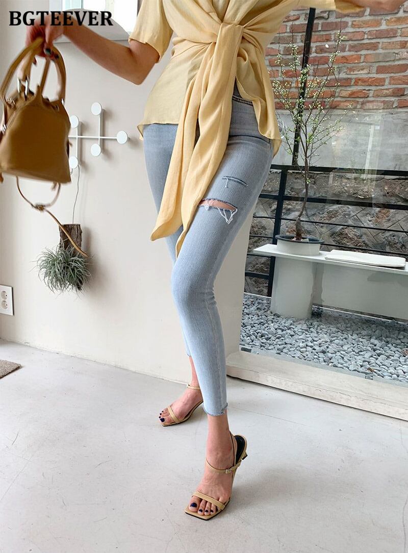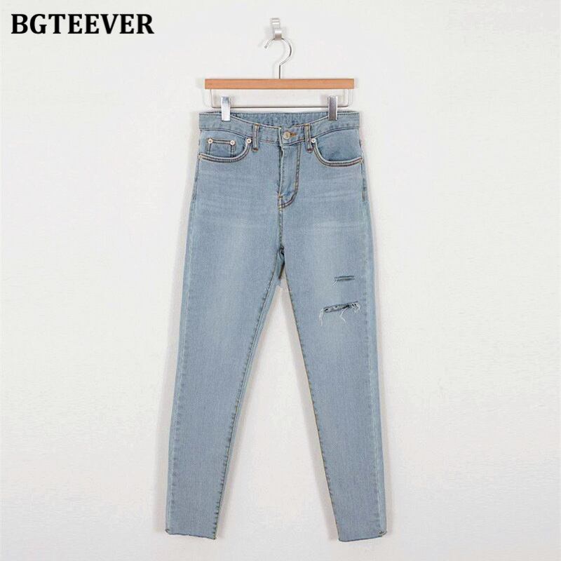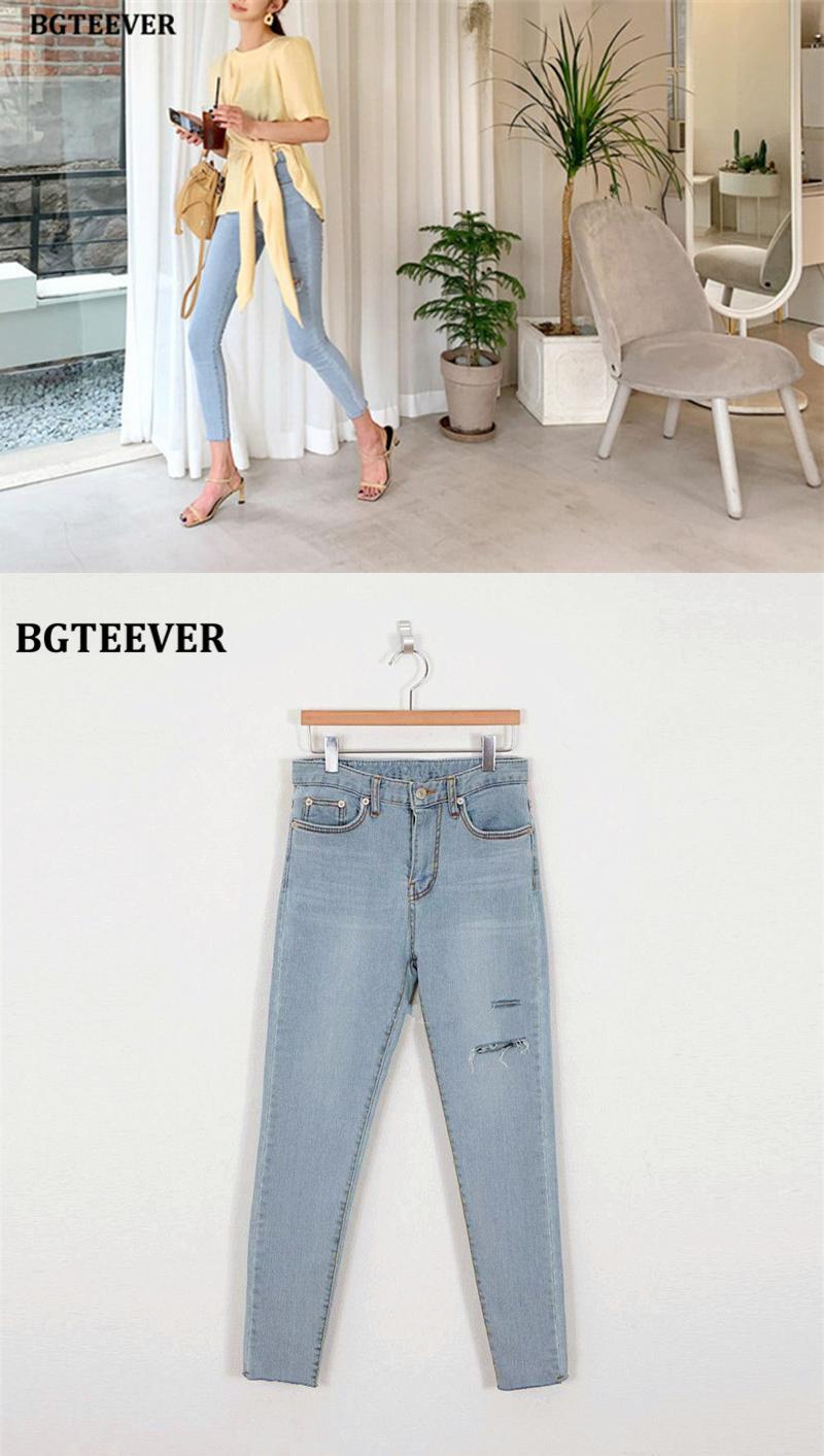 【新作】【送料無料】 BGTEEVERストリートウェア破れた穴スキニーブルージーンズ女性2020夏秋デニム鉛筆ジーンズ足首までの長さのボトムス サマー 夏物 オータム 秋物 12b166894714891