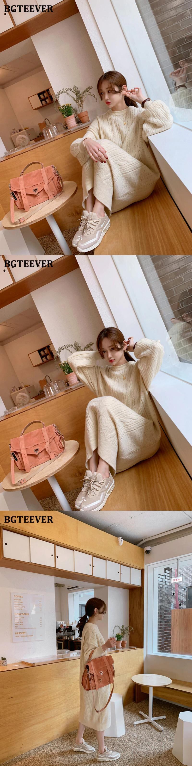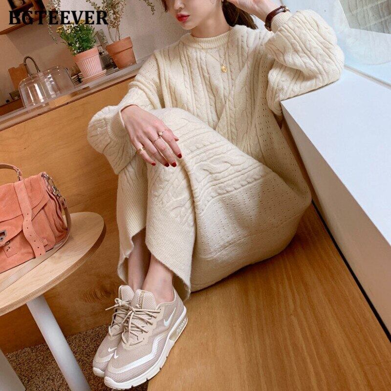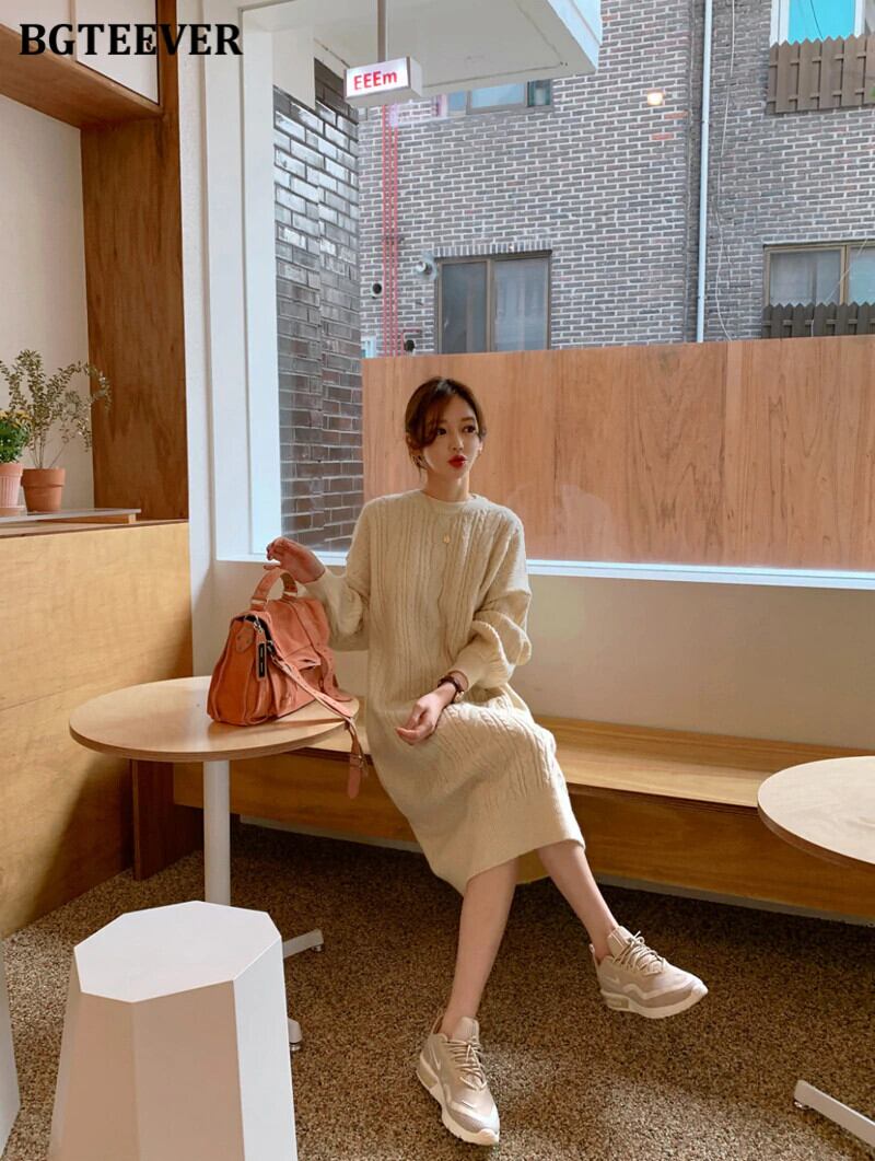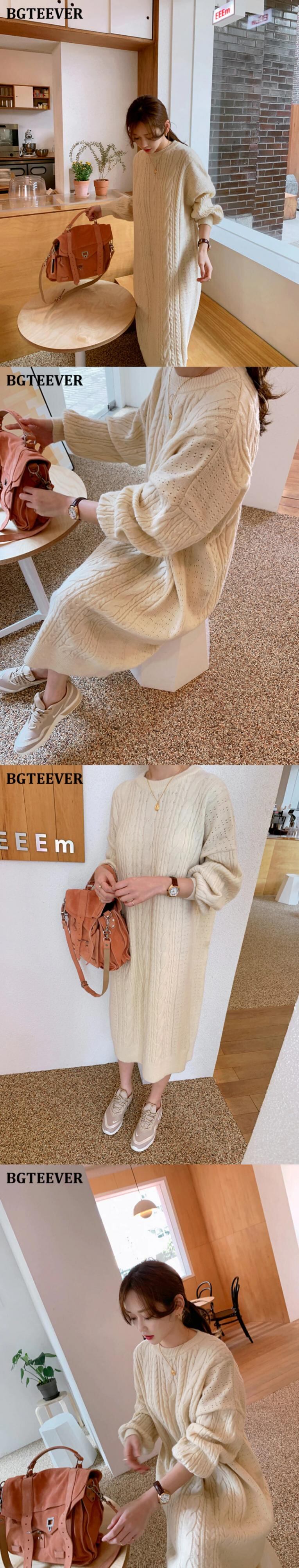 【新作】【送料無料】 BGTEEVER秋冬厚手の暖かいツイストセータードレス2020ヴィンテージ特大Oネック女性ニットドレス オータム 秋物 ウィンター 冬物 ビンテージ 12b168943147978