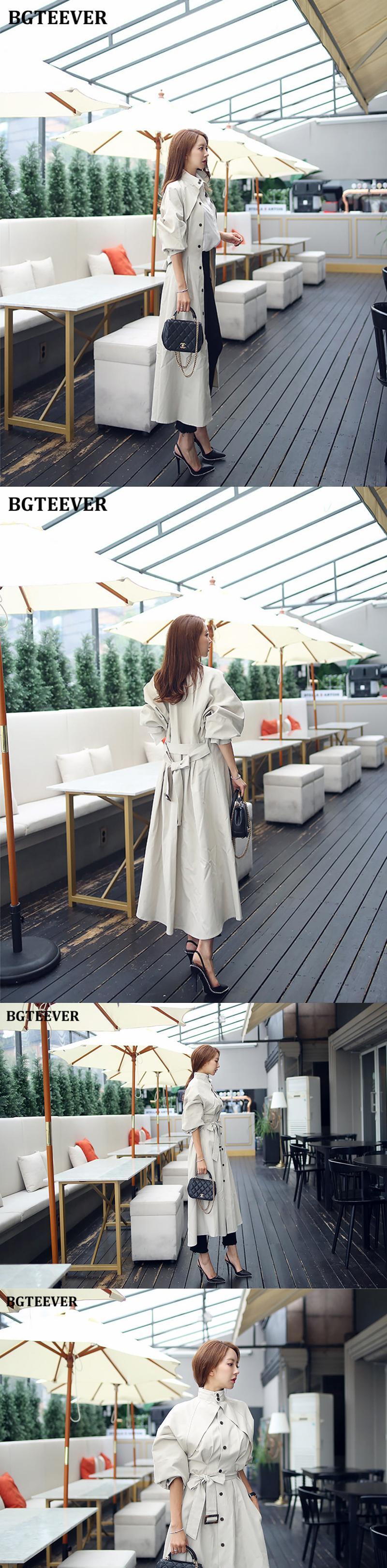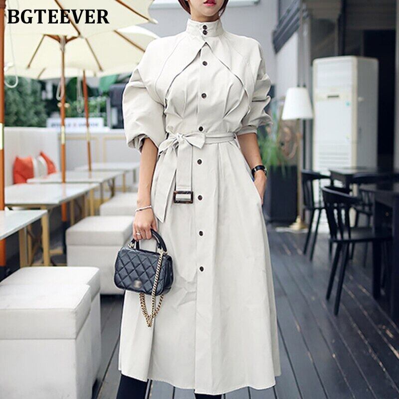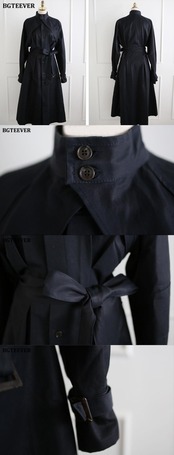 【新作】【送料無料】 BGTEEVERタートルネックレディースウインドブレーカーシングルブレストベルトロングオーバーコート2020秋Aライントレンチコート オータム 秋物 ハーネス 12b175427301430