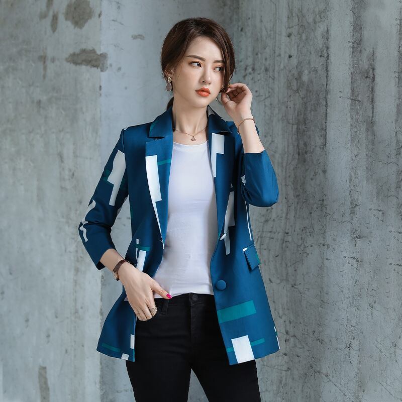 【新作】【送料無料】 ロングコート2019秋の新しいファッション抽象印刷ドレープフリー鉄威厳のあるミドル丈スーツジャケット婦人服-アリババ オータム 秋物 12b377307191953