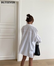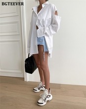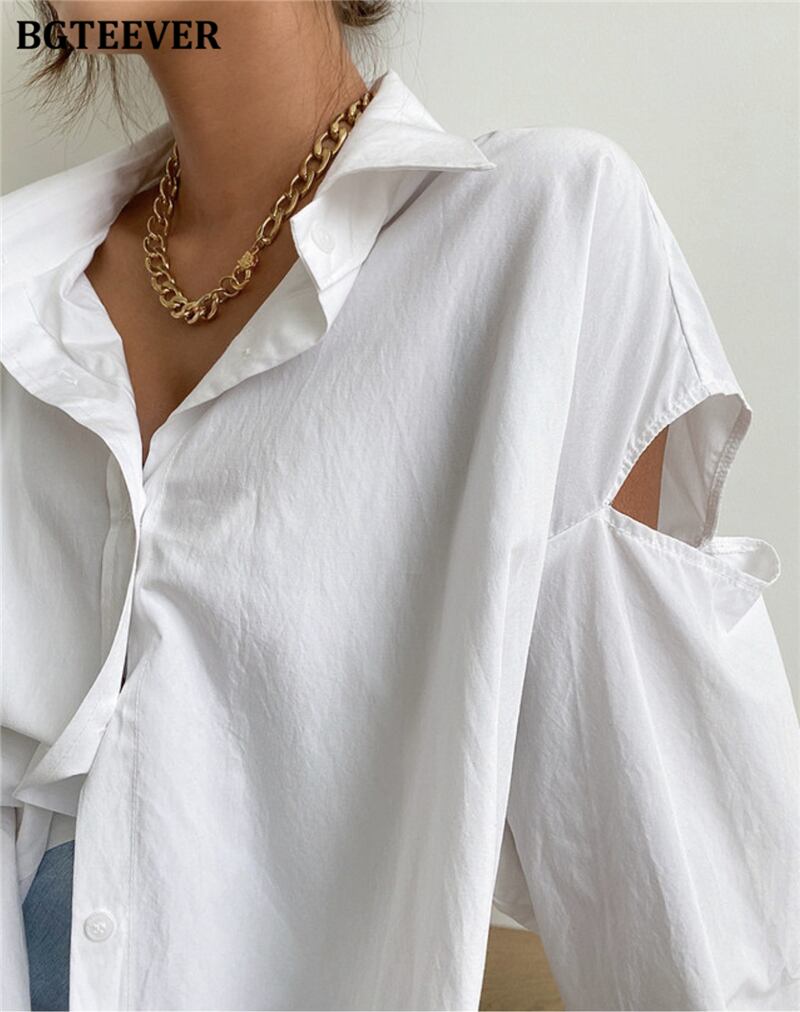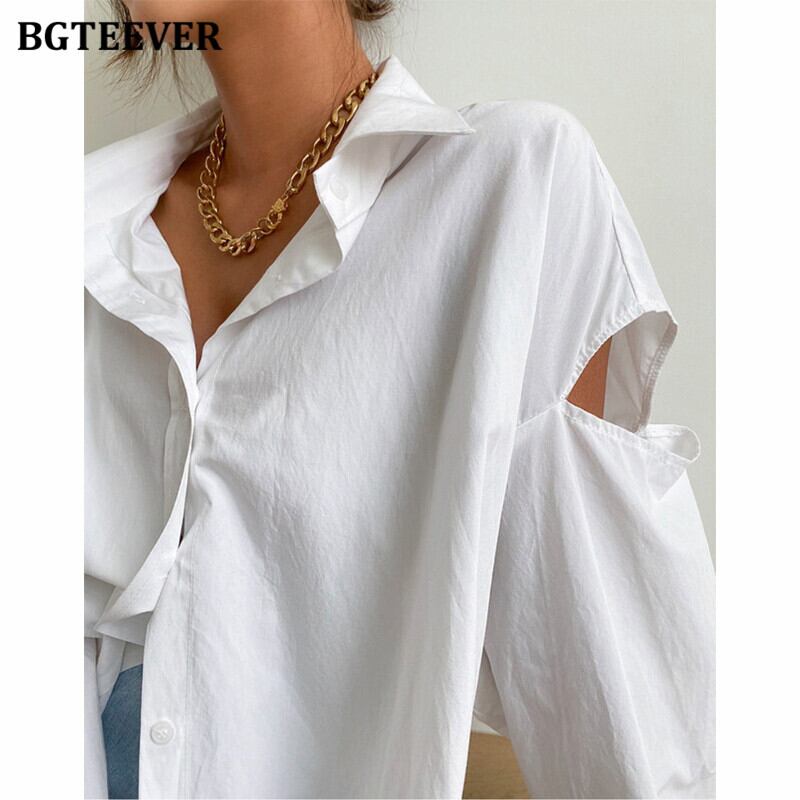 【新作】【送料無料】 BGTEEVER夏秋特大ホワイトシャツ長袖中空アウト女性ブラウスラペルストリートウェアルーストップス2020 ロング サマー 夏物 オータム 秋物 12b145192875261