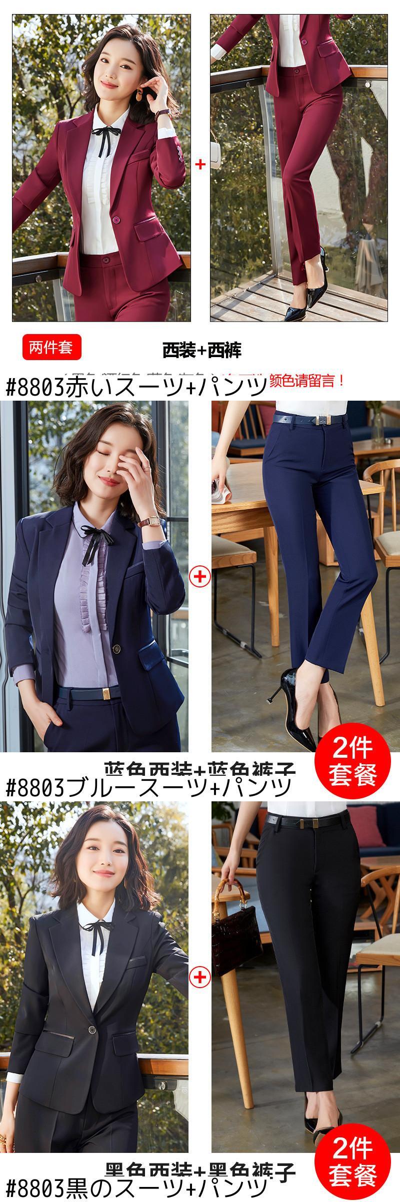 色:8803赤いスーツ+パンツ,8803ブルースーツ+パンツ,8803黒のスーツ+パンツ,8803グレーのスーツ+パンツ,8803赤いスーツ+スカート,8803黒のスーツ+スカート,8803ブルースーツ+スカート,8803グレースーツ+スカート,ワンピースマッチングシャツカラーノート,ワンピースベスト(カラーはスーツ付き),シングルスーツ(カラーノート),シングルスカート(カラーノート),シングルパンツカラーノート