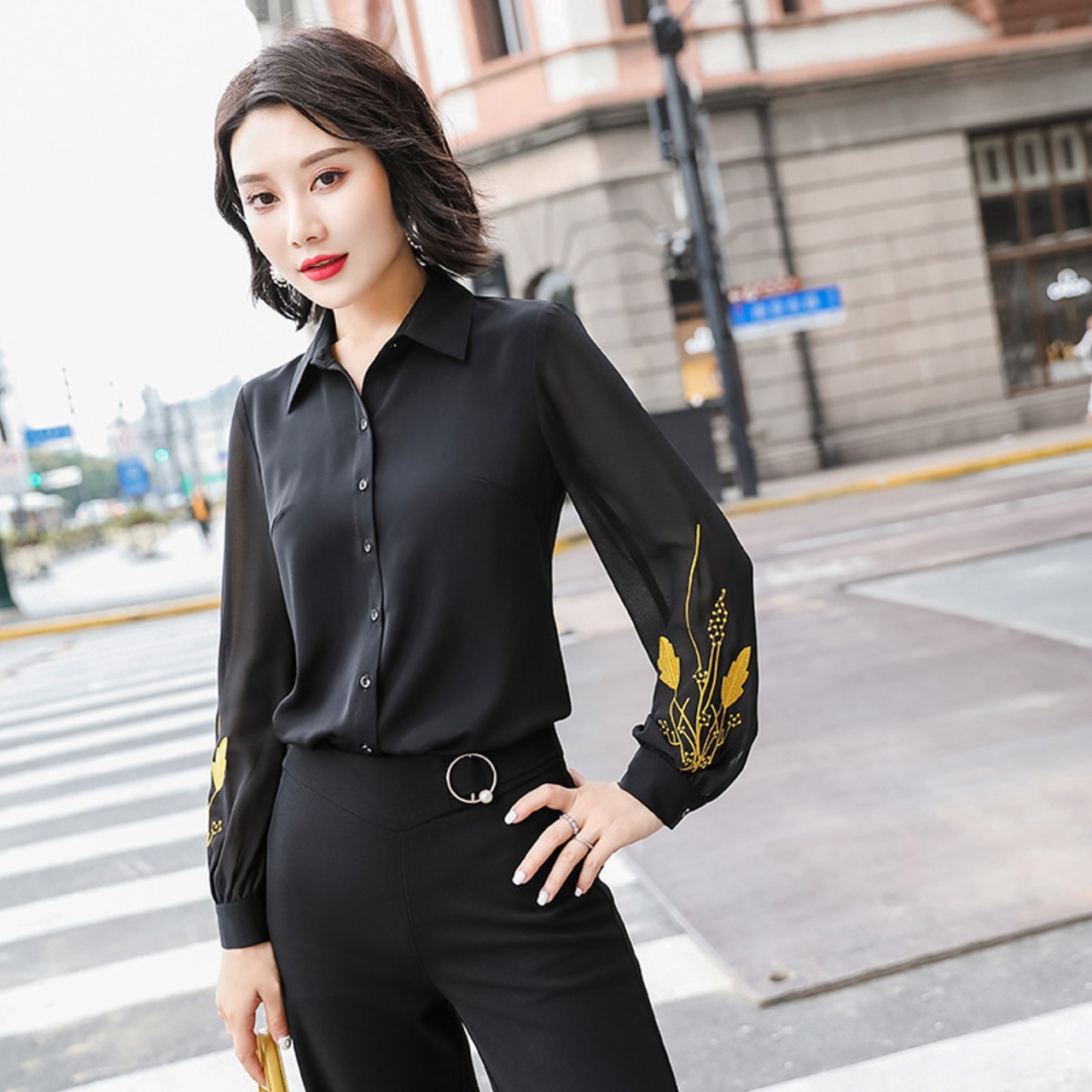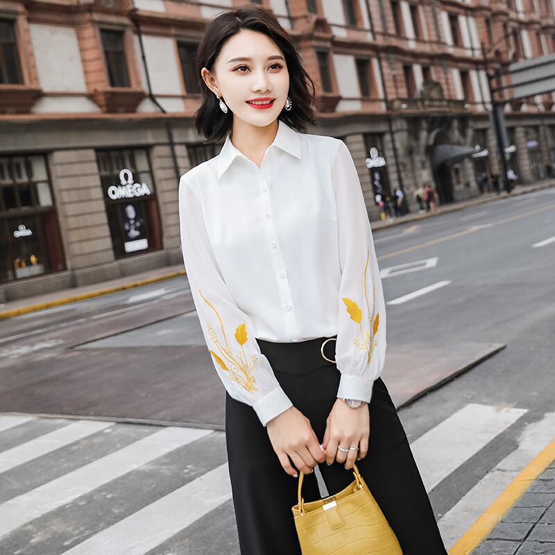 【新作】【送料無料】 レディースシャツ2021新しいデザインセンスニッチシフォントップス秋の長袖スリムホワイトビジネスシャツ-アリババ ロング オータム 秋物 12b365227546840