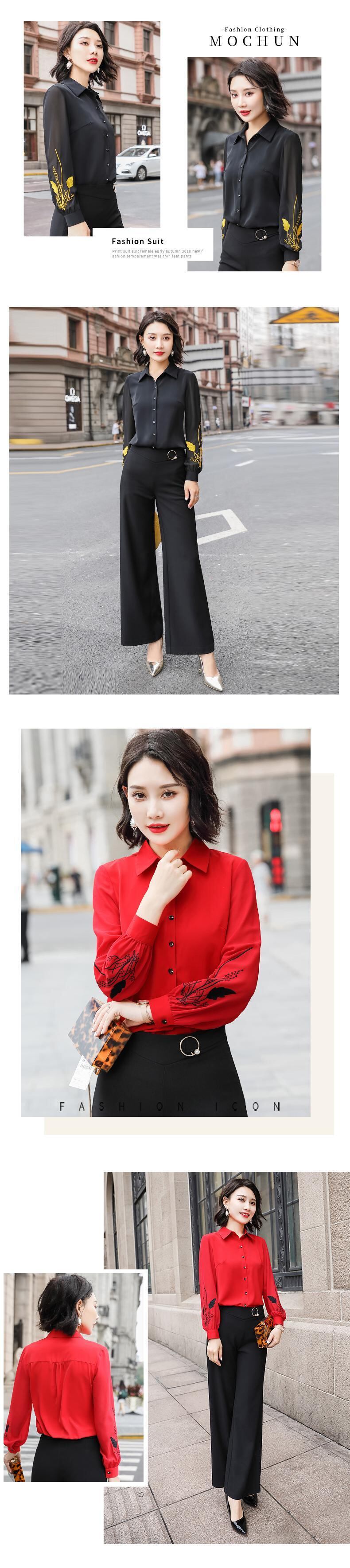 色:ワンピース黒長袖シャツ,ワンピースの赤い長袖シャツ,ワンピースホワイトロングスリーブシャツ,黒の長袖シャツ+黒のワイドレッグパンツ,赤の長袖シャツ+黒のワイドレッグパンツ,白の長袖シャツ+黒のワイドレッグパンツ