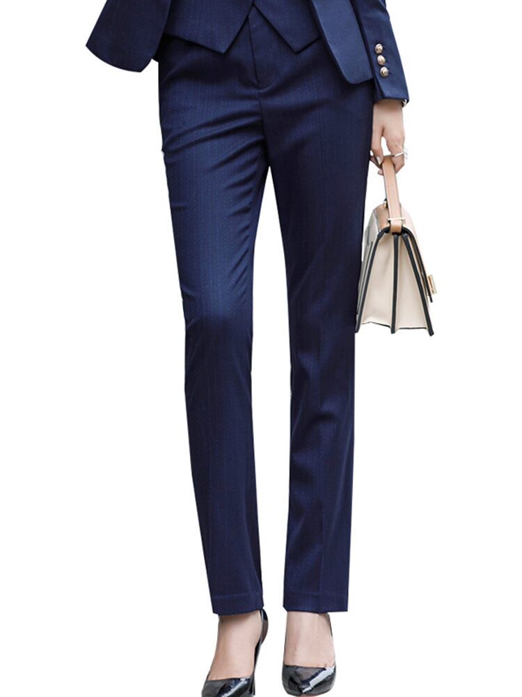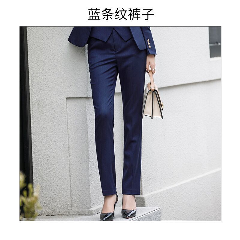 【新作】【送料無料】 ブルーストライプパンツレディースビジネススーツマルパンツスーツパンツスリムストレートパンツスリミングワークパンツレディース夏-アリババ サマー 夏物 12b391757234206