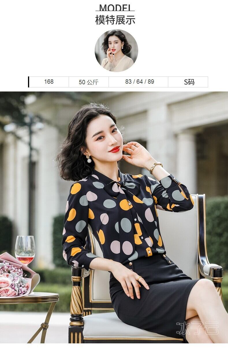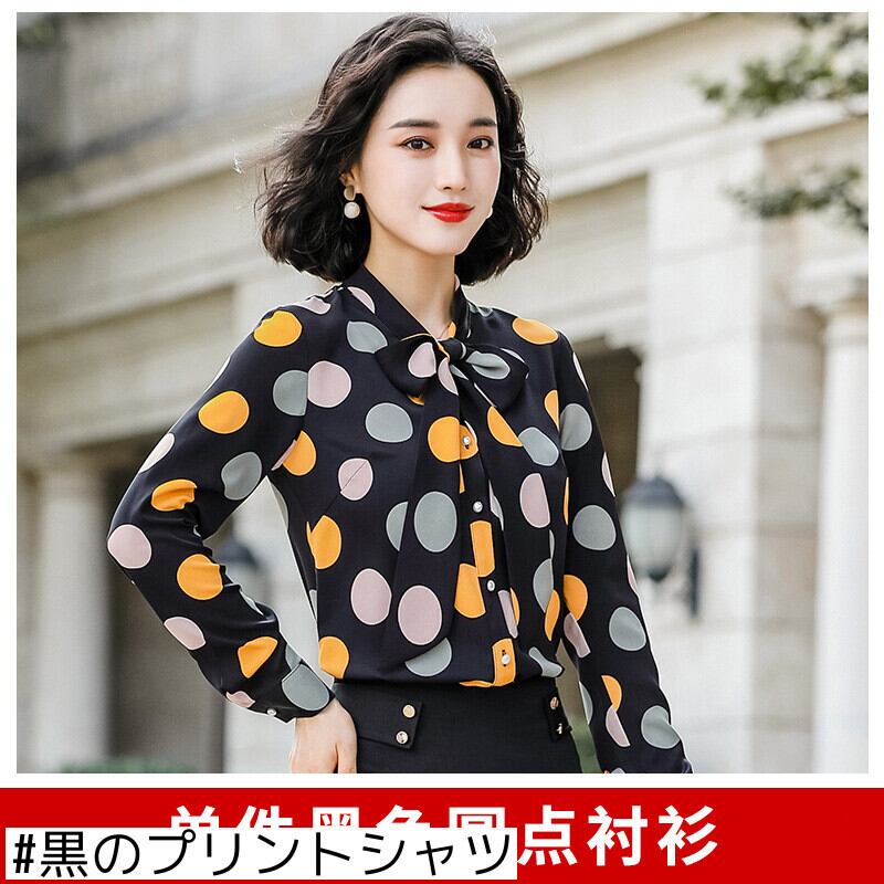 【新作】【送料無料】 2021年秋新しいボウタイブラウス女性ルーズ水玉シャツプロの長袖シャツオーバーオール-アリババ ロング リボン 12b322088140752