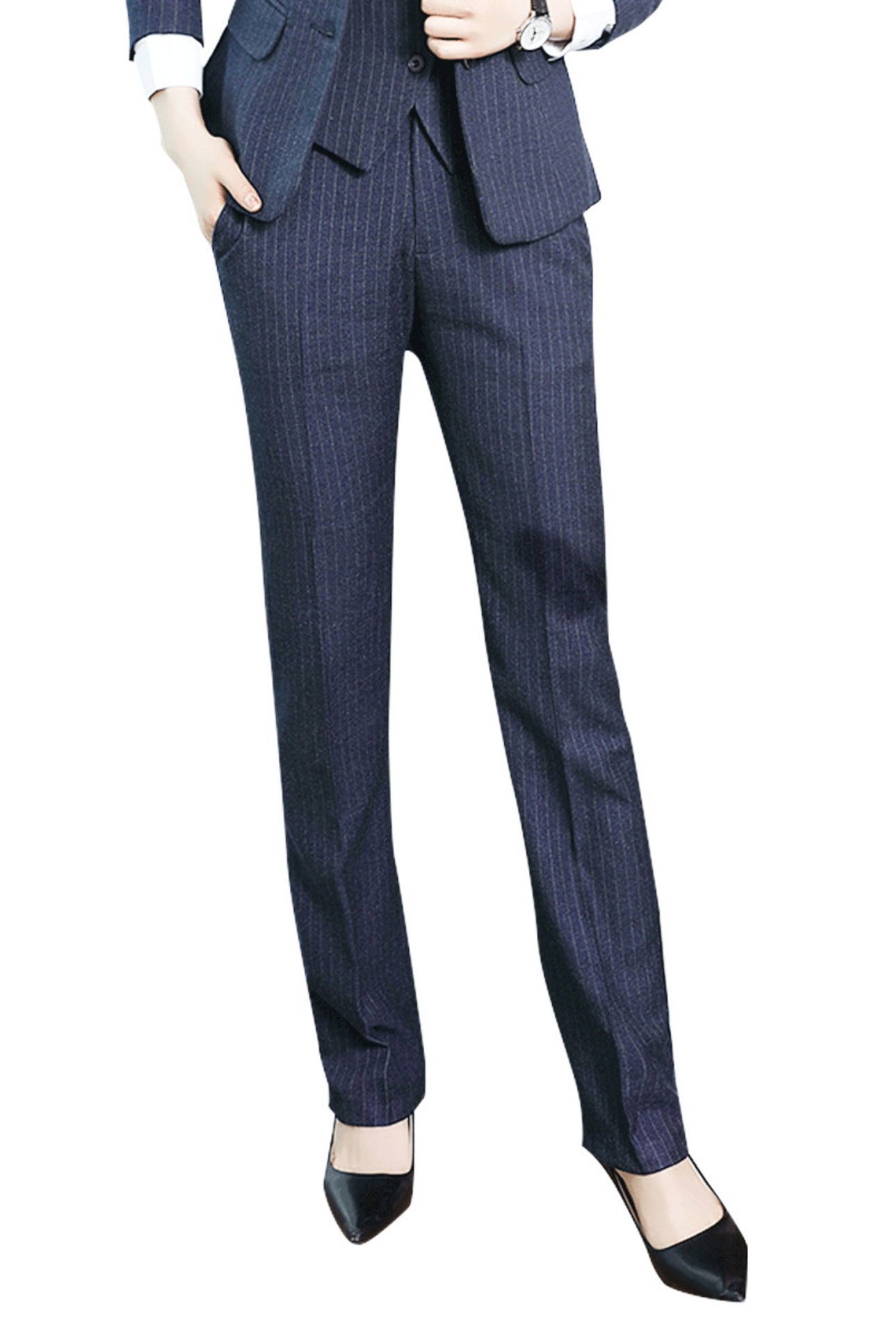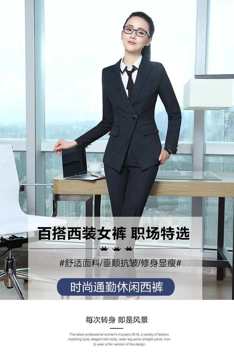 【新作】【送料無料】 プロのスーツパンツ女性の2021年秋新しい青い縞模様の女性のストレートパンツ作業服マルパンツオーバーオール-アリババ ブルー オータム 秋物 ストライプ 12b345143930971