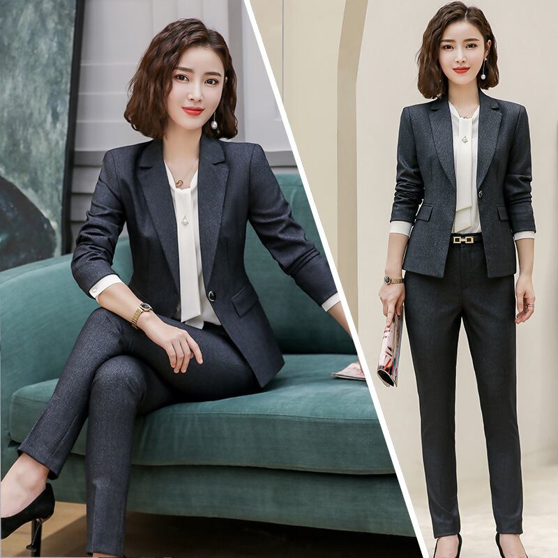 【新作】【送料無料】 スーツスーツレディースプロウェア2019春の新しいファッションスタイルの小さなスーツスリムスーツグレーのオーバーオール-アリババ スプリング 春物 12b389677058560